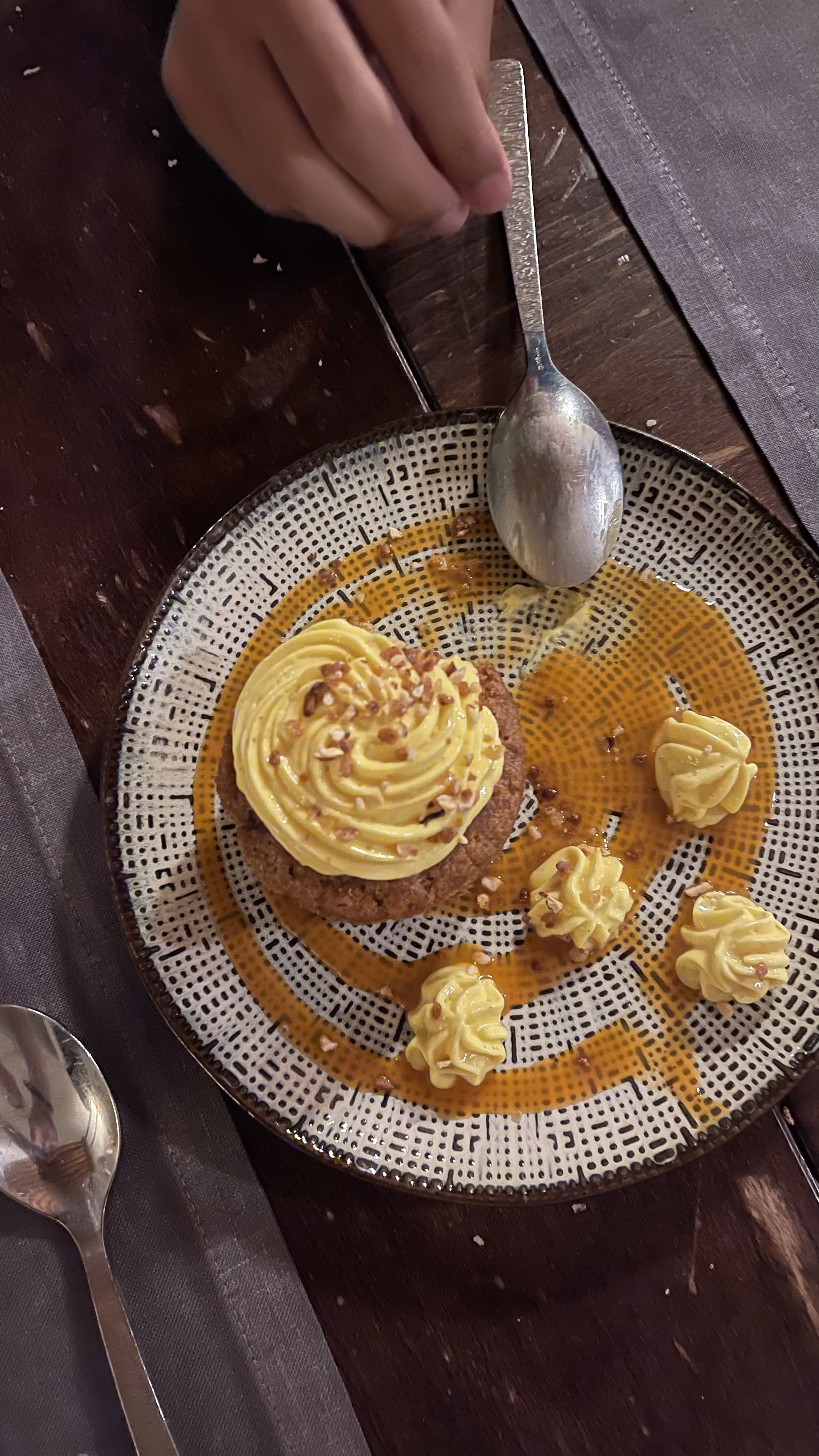 C'est un joyau caché dans une rue touristique très fréquentée. Comme c'est au deuxième étage, on n'entend même pas le bruit de la rue. La nourriture est simple et délicieuse. J'aime tout, la salade de tomates en entrée est tellement rafraîchissante ; la mousse aux œufs est également un apéritif incroyable. Côté sucré, l'abricot rôti est parfaitement équilibré entre le sucré et l'aigre-doux ; la mousse dôme coco est juste un délice ! 38 euros pour un dîner de 3 plats, prix très correct dans une zone touristique. Le service est très sympa aussi. Je reviendrai.