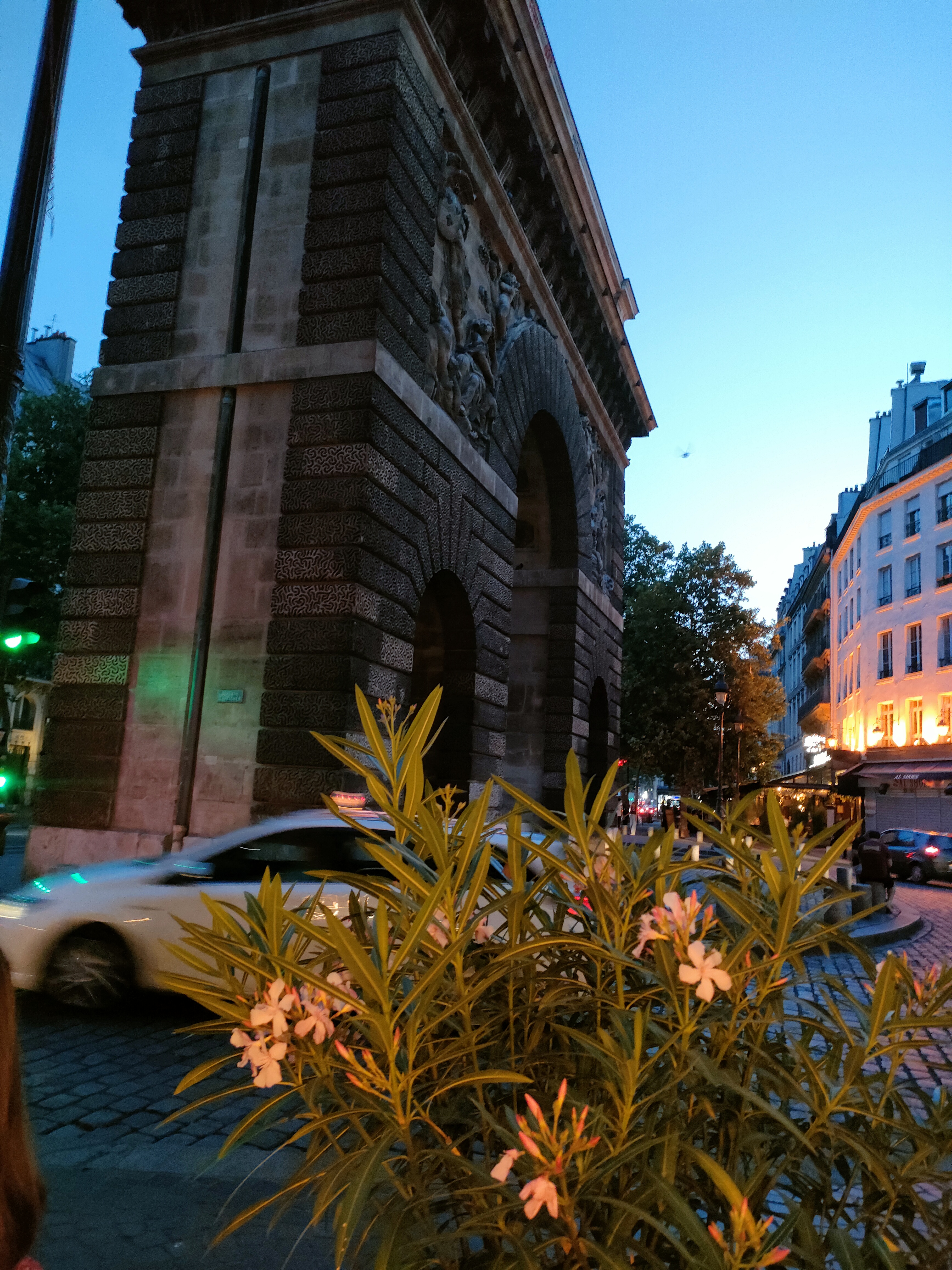 Une terrasse très agréable au pied de la Porte Saint-Martin. C'est le seul point positif de cette brasserie qui sert des plats manifestement réchauffés au micro-onde à un prix exorbitant. Les boissons sont également très chères. En partant, nous sommes passés devant la salle et nous avons regretté de ne pas l'avoir fait avant car l'odeur de graillon écœurante nous aurait dissuadé de nous installer.