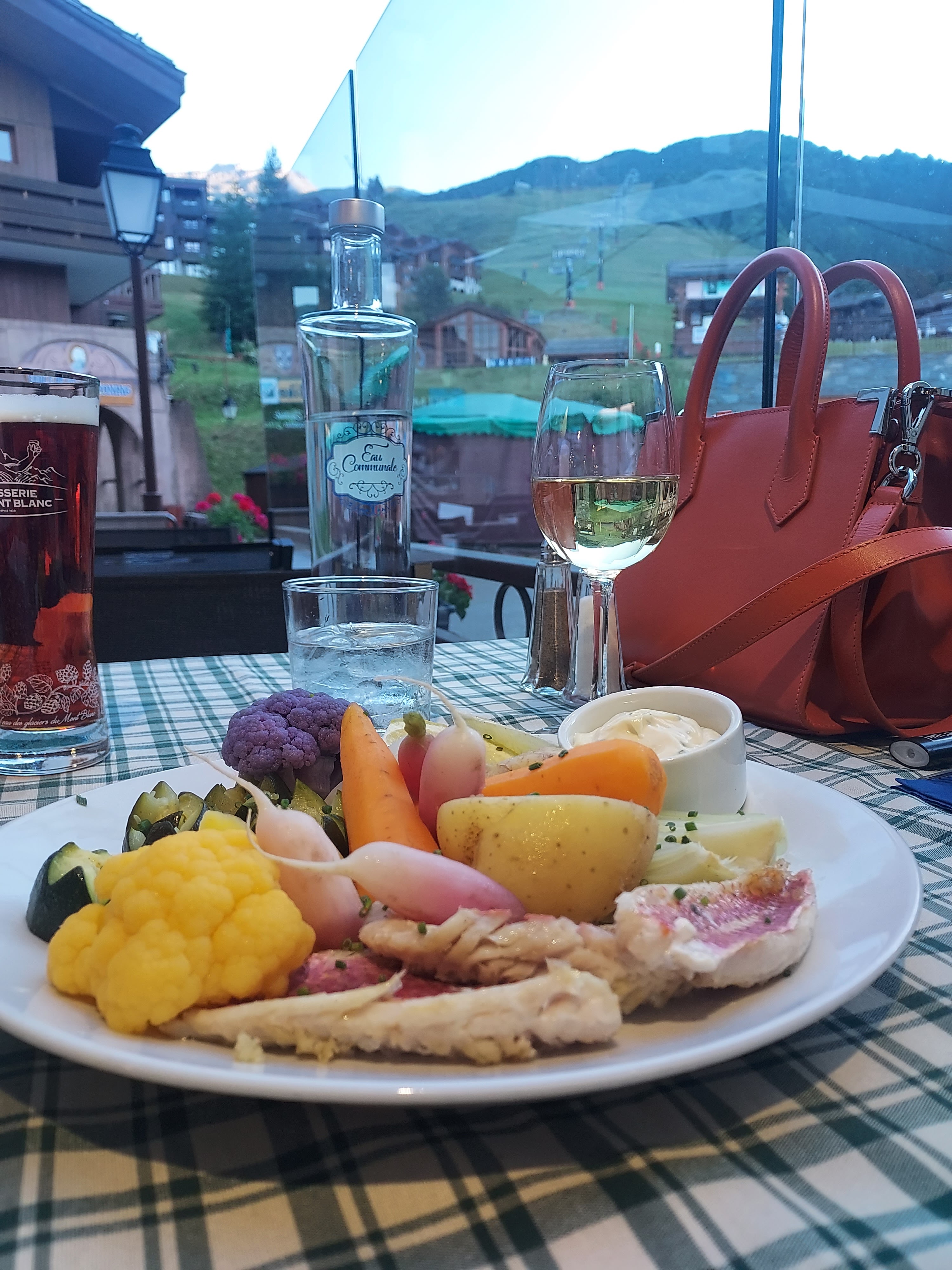 Déjeuner avec vue... double vue sur les pistes et la montagne. Bonne nourriture