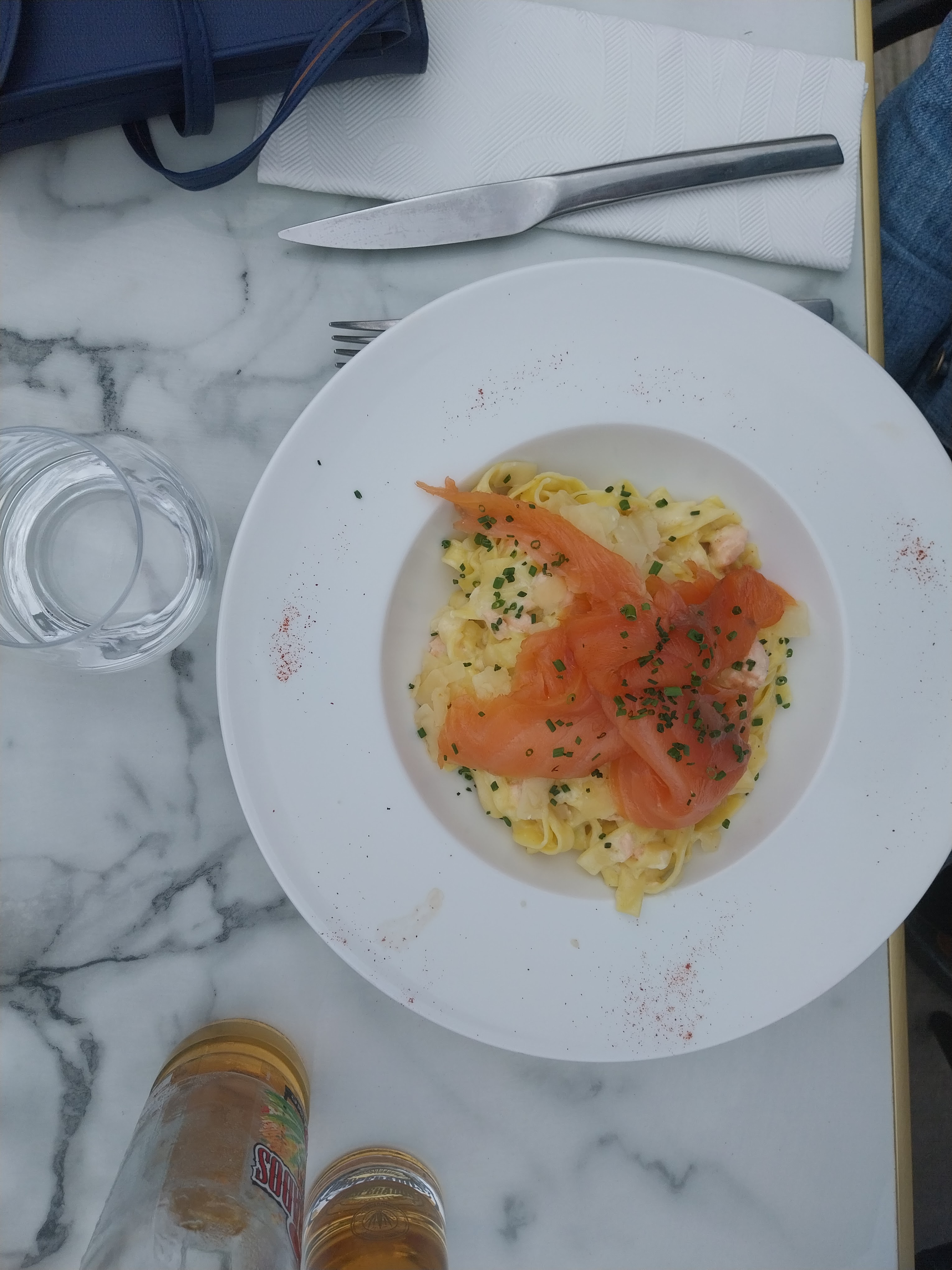Si le cadre paraît idéal - en bord de mer, notre expérience ne l'a pas été. Les plats servis étaient bons sans être exceptionnels, tout juste au niveau du standing que veut se donner l'endroit et pourtant trop chers au vu de leur valeur en bouche. Les deux saumons étaient très bons, fins et bien équilibrés, mais les tagliatelles, bien que tout à fait correctes, manquaient d'assaisonnement. Toutefois, le service n'était clairement pas à la hauteur : nous avions demandé à changer de table à cause du soleil assommant qui cognait à travers la porte vitrée tristement fermée. On nous refusa cette demande sous prétexte que le restaurant était plein : lorsque nous sommes sortis deux heures après, il ne l'était qu'au quart. Aussi, impossible d'avoir des informations sur les plats que nous allions commander : le serveur nous assura simplement avec une pointe de mépris et de rigidité qu'ils étaient très bons. Une autre table située derrière nous fit la même demande : elle eut droit à une réponse détaillée. Pour couronner le tout, ce petit détail loin d'être insignifiant : le parmesan commandé n'arriva qu'après trois demandes dans un petit récipient en plastique... En bref, nous ne semblions pas correspondre au standing du lieu... Ca tombe bien, le restaurant non plus. Plus de considération des clients, de transparence, de communication, mais aussi un ajustement des tarifs de quelques euros pour obtenir un meilleur rapport qualité-prix, plus juste et correspondant davantage à la réalité, permettrait à cet établissement de franchir la note de 3/5, voire même au-delà.