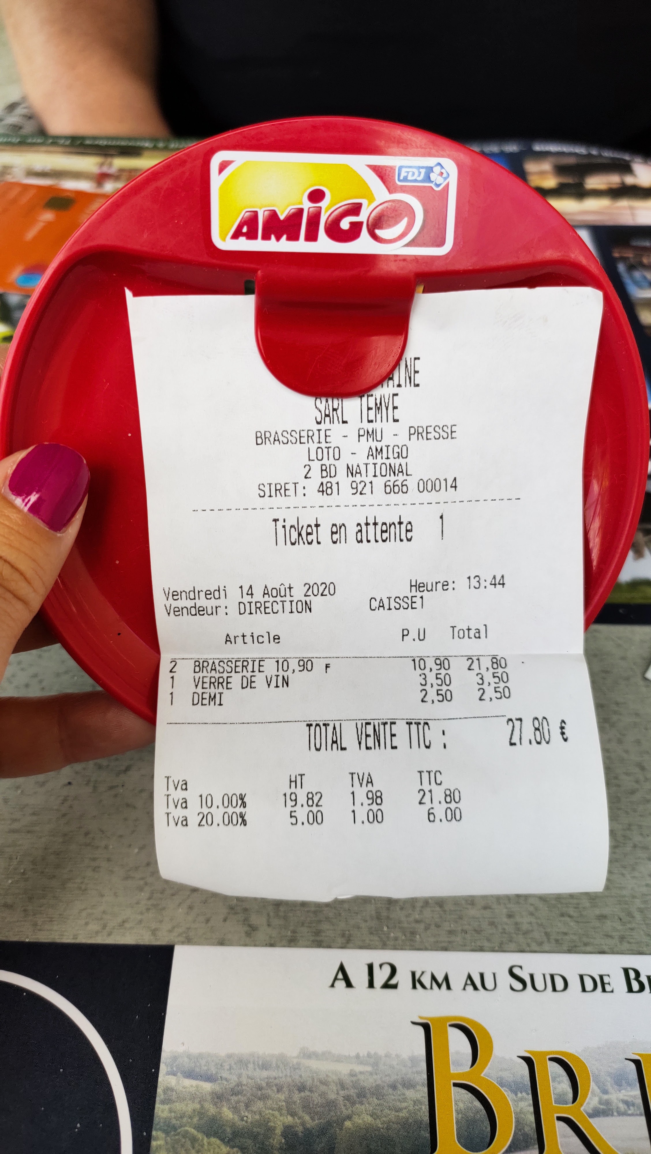 En déplacement de travail nous l ´avons découvert car la brasserie est située sur une artère de fort passage , Le plat est à 12 € et très copieux Le dessert à 5€ La déco typique de la brasserie Le service aimable et dans les temps Je recommande vivement