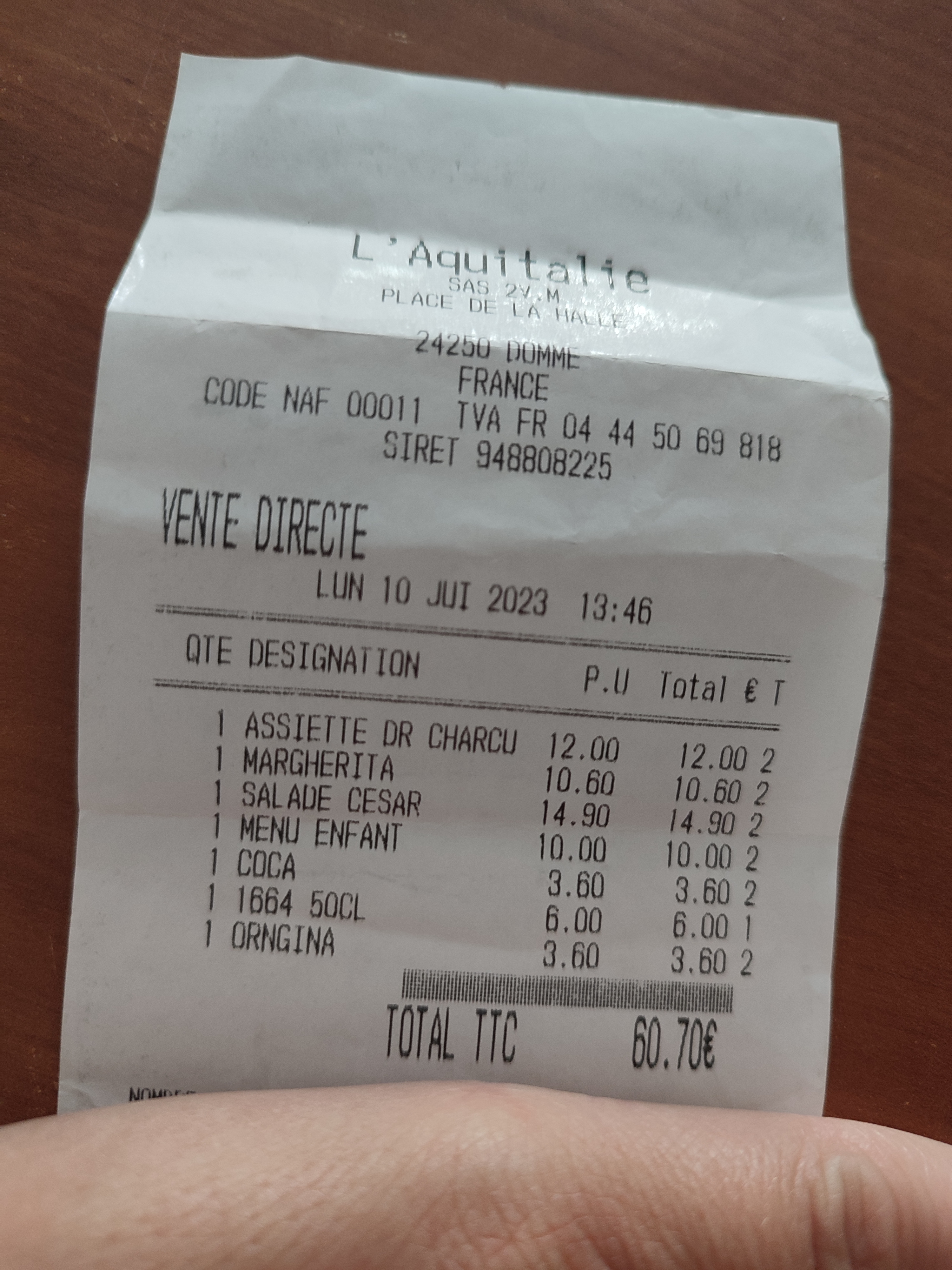 Très bon repas à l’Aquitalie. Personnel sympathique, merci beaucoup à la gérante du restaurant et qui a été adorable avec nous. Service rapide malgré la foule.