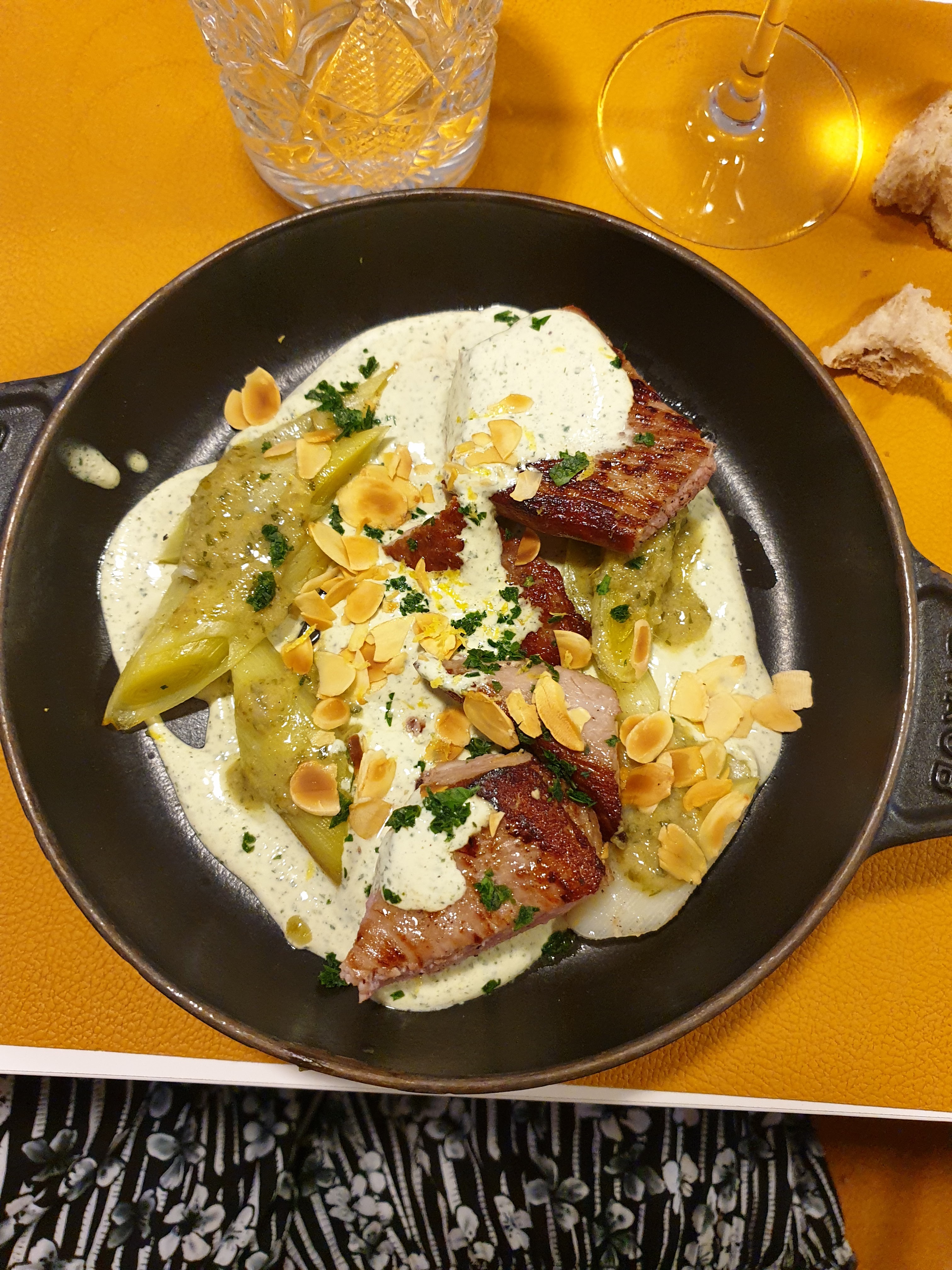 Un très joli restaurant situé dans un beau quartier de Montpellier. Le service était excellent et le personnel accueillant et serviable. Ma femme a commandé le ris de veau et moi la langue du bœuf. Les deux étaient excellents. Je recommande vivement la langue, elle a été parfaitement préparée. L'ambiance était sympa, mais un peu austère. Qualité/prix, excellent. Ça vaut le détour.