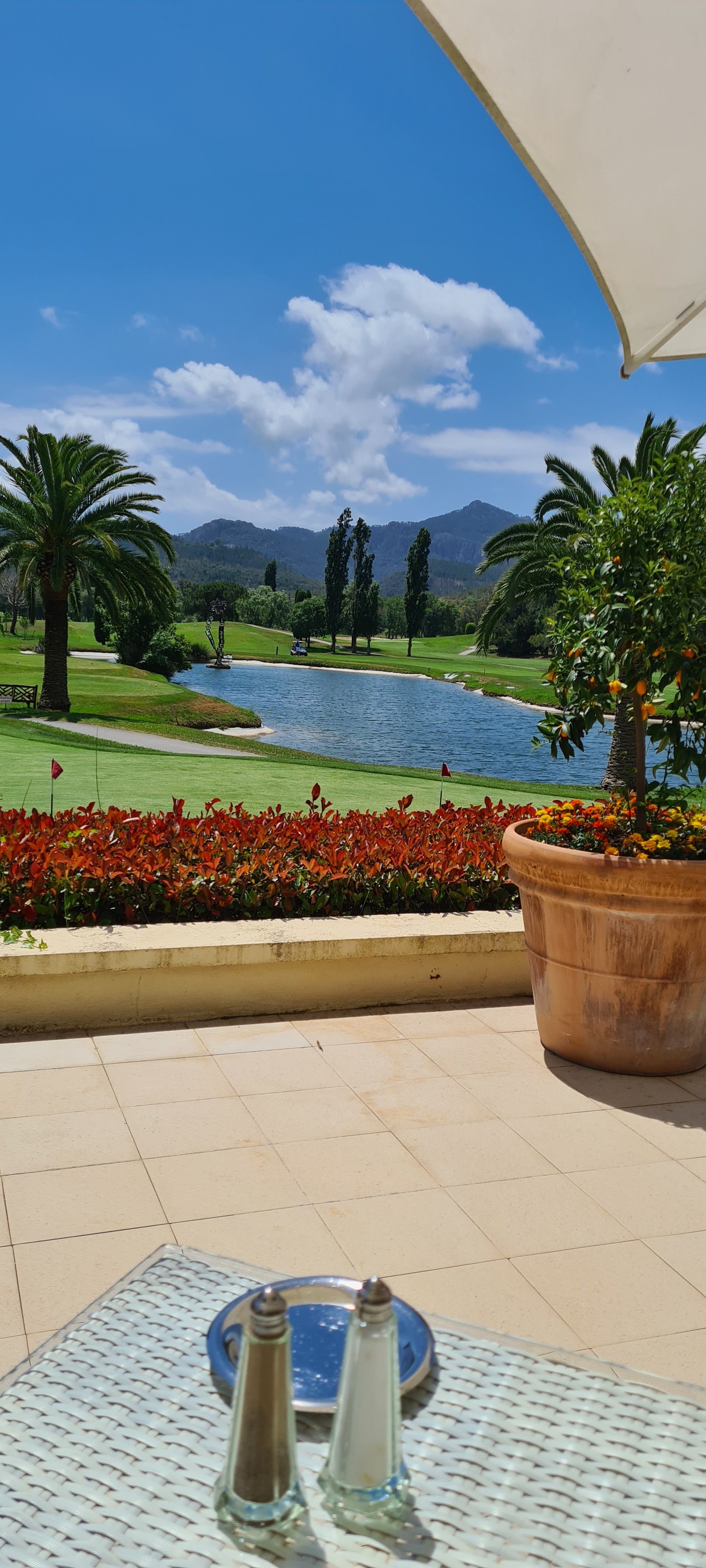 Vue sur un golf magnifique, particuliérement léché. Plein les yeux. Personnel sympa. Plats apétissants. Le vin blanc de la propriété Barbossi est tres agréable a un prix correct. Bon Rapport qualité/prix. Je recommande.