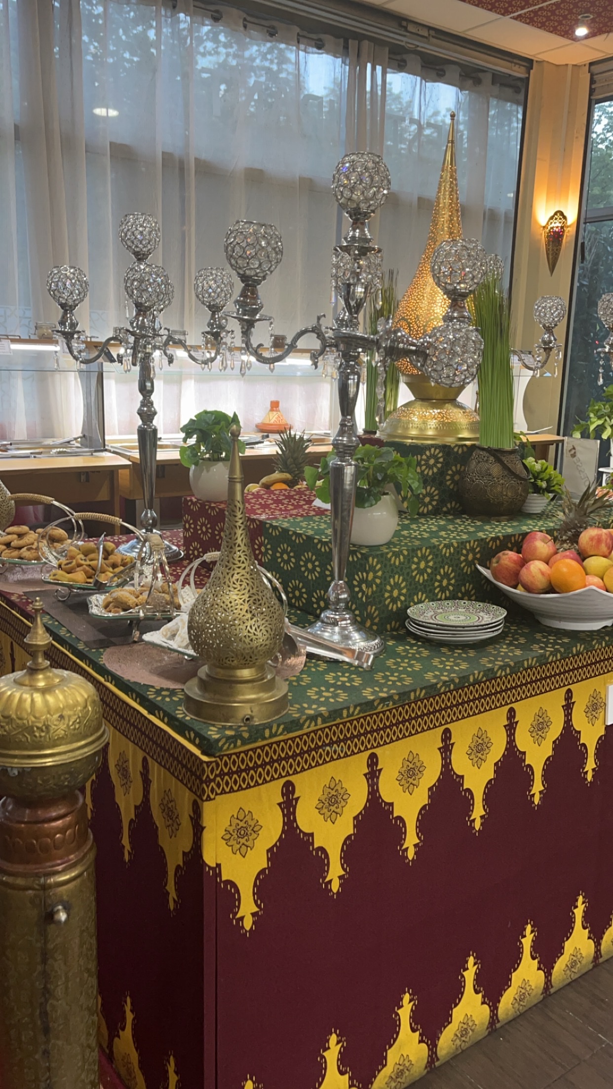 Accueil nickel restaurant avec une superbe décoration marocaine par contre le buffet pa assez de choix sur les plat principal et désert basic je m'attendais a mieux.