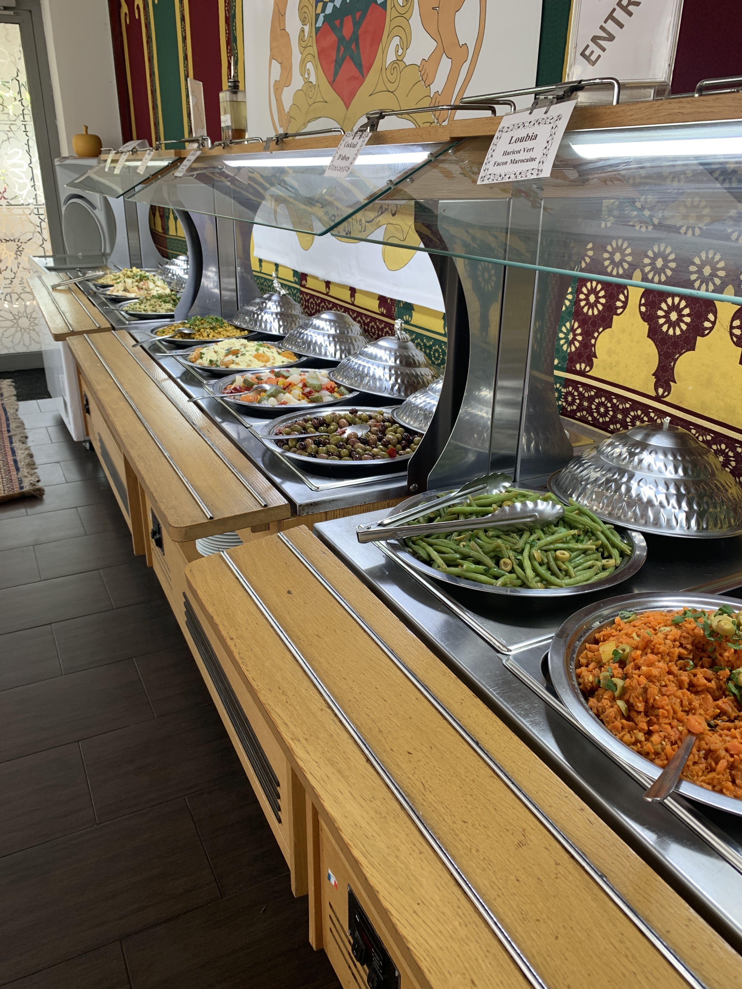 Plus un buffet à volonté qu'un restaurant Marocain mais sympa pour manger rapidement et pas trop cher entre collègues le midi
