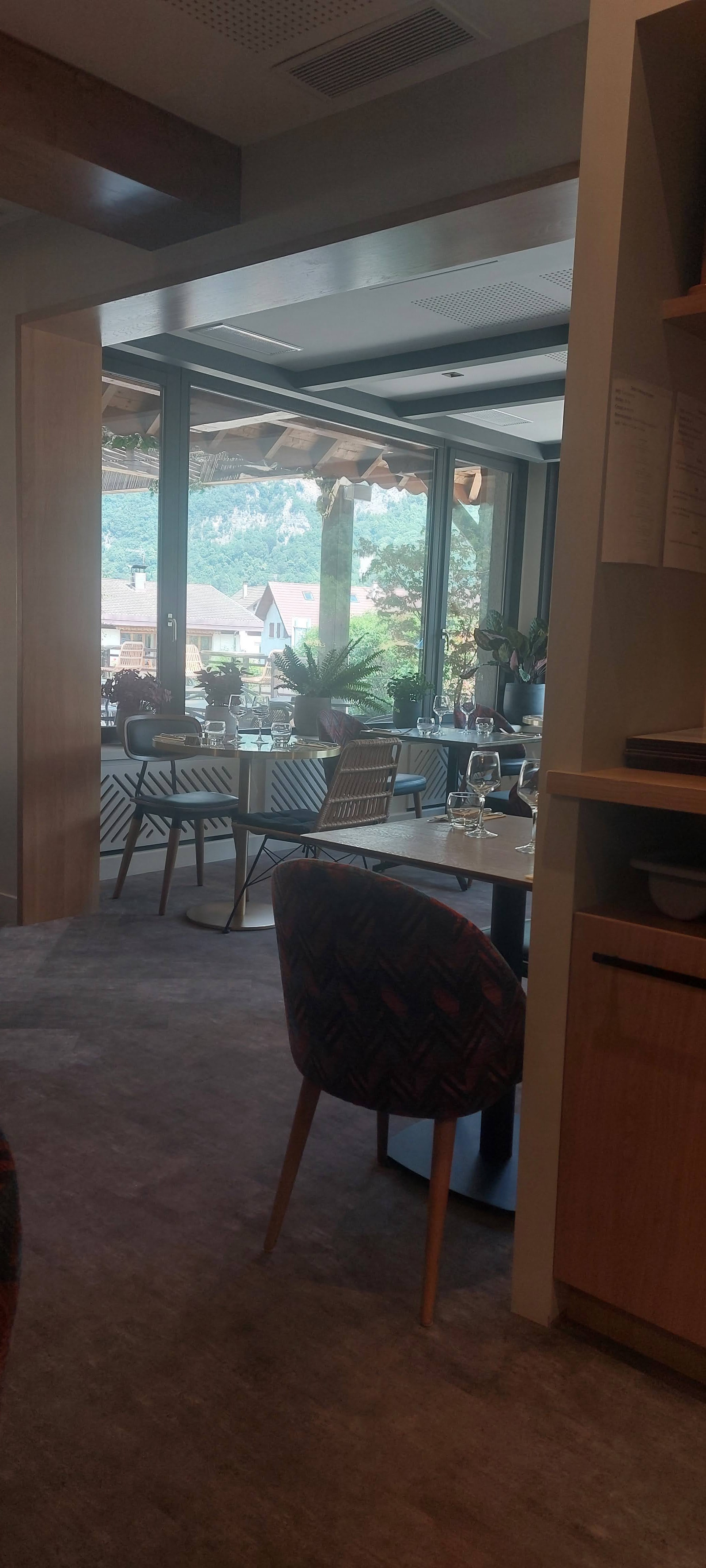 Bonjour on cherchait un endroit agréable pour déjeuner avec ma compagne on a trouvé cet hôtel avec un très bon restaurant terrasse calme agréable à lombre avec vue sur les montagnes la cuisine était excellente je dois faire remarquer qu'il y a des vitres pour que la cuisine soit ouverte et que les clients vois ce qui s'y passe je trouve cela parfait au point de vue de la transparence surtout que les frites sont fait maison :) et plus rare la sauce béarnaise qui accompagne et mon faux-filet était fait maison j'ai beaucoup apprécié le service était parfait je remercie toute l'équipe