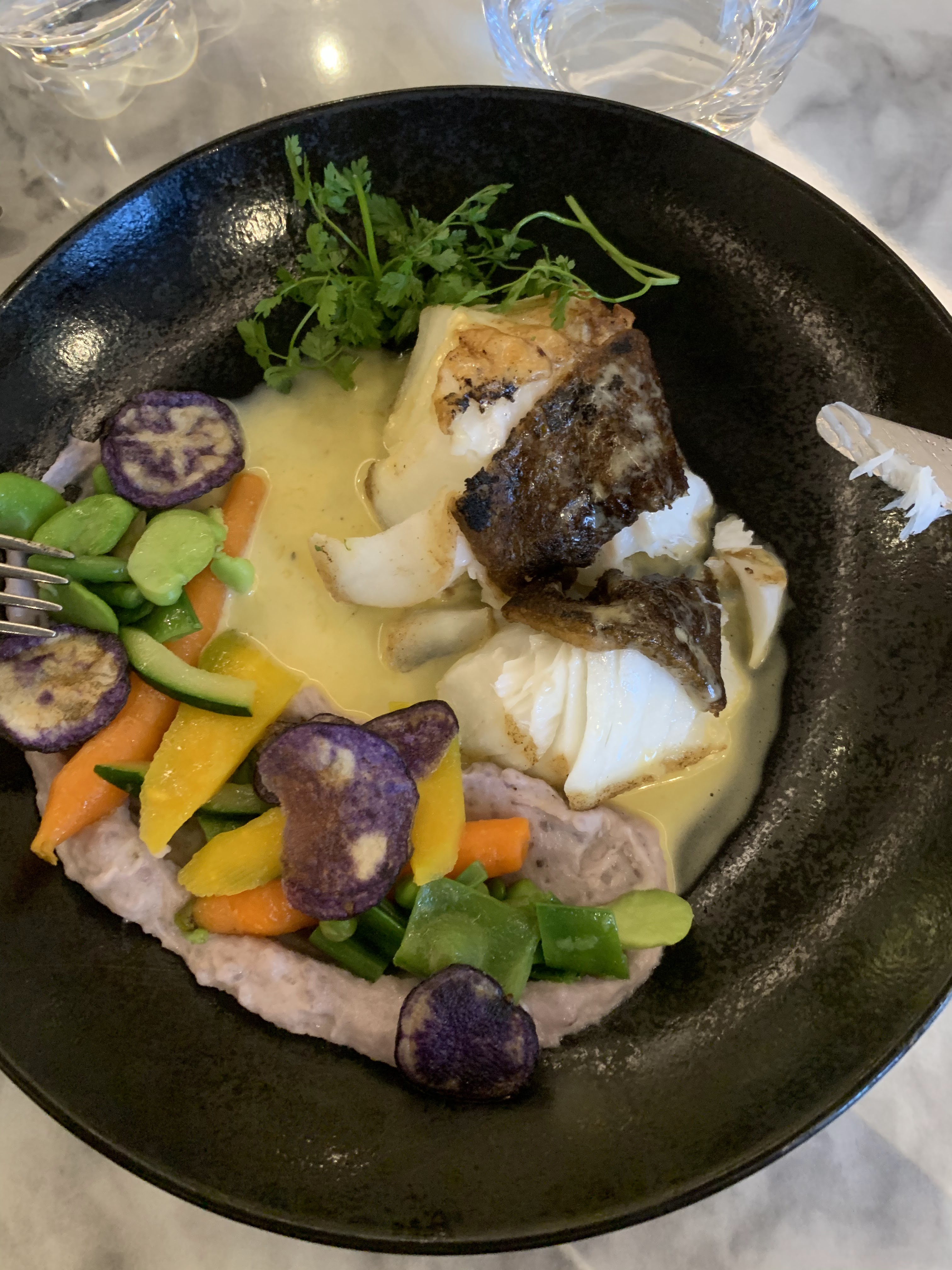 Restaurant : tres bonne decouverte. Plats tres bien cuisines et presentes avec soins. Service impeccable grace a un personnel soigne et une attention prticulierement fine des serveurs. Le porc cuisson lente etait divin. Nous recommandons donc ce restaurant en dehors des sentiers battus du lac d’Annecy.