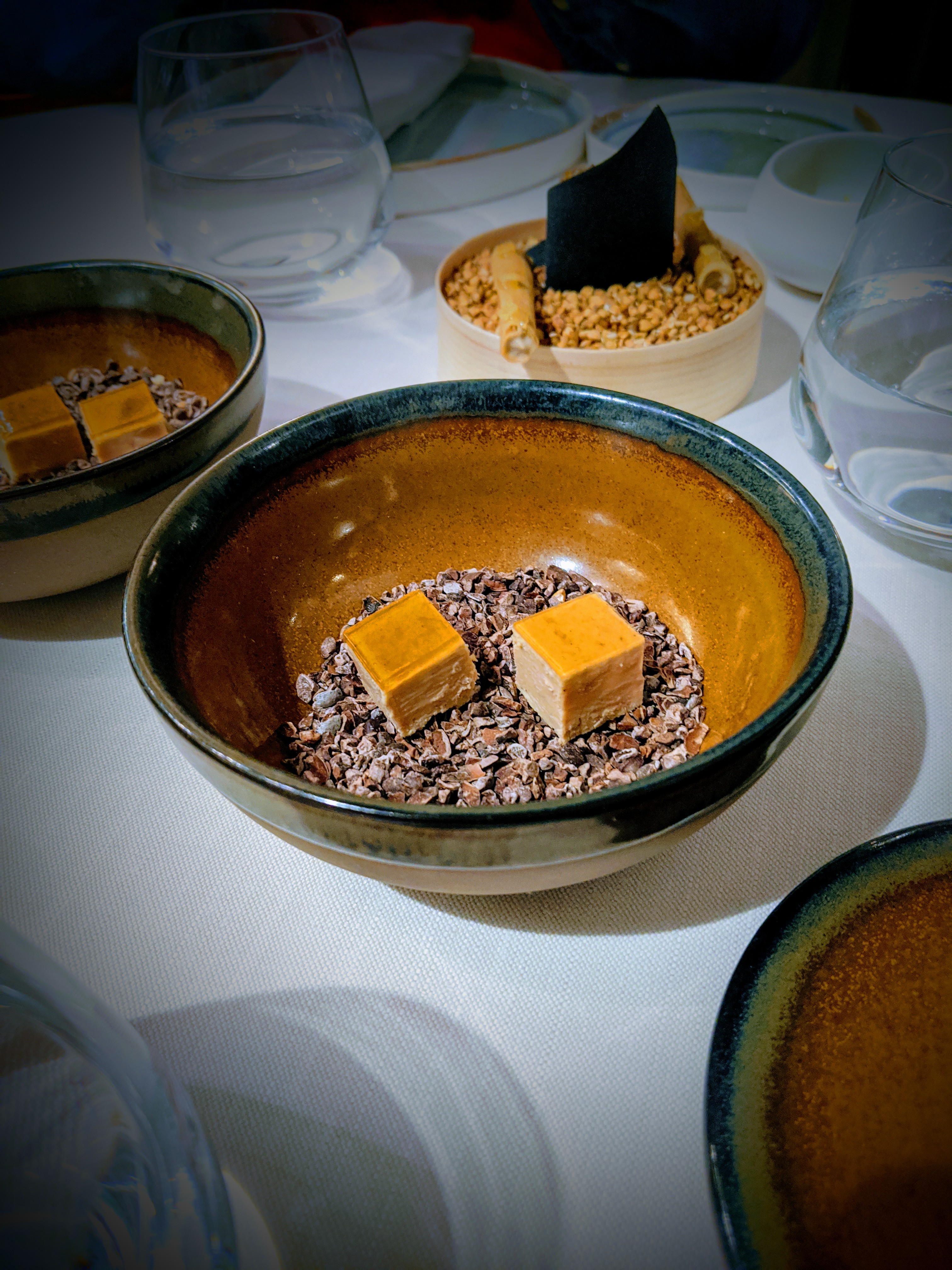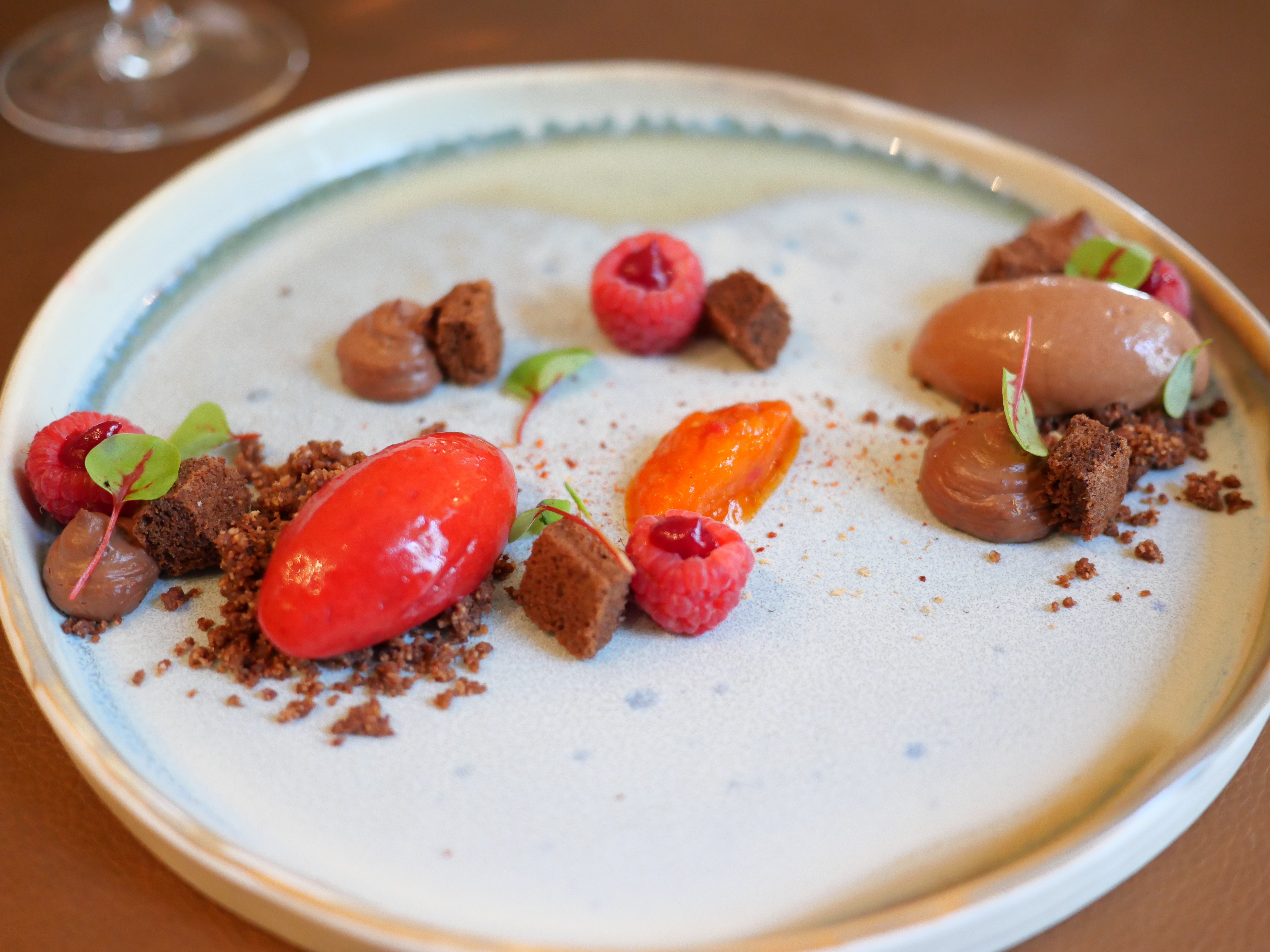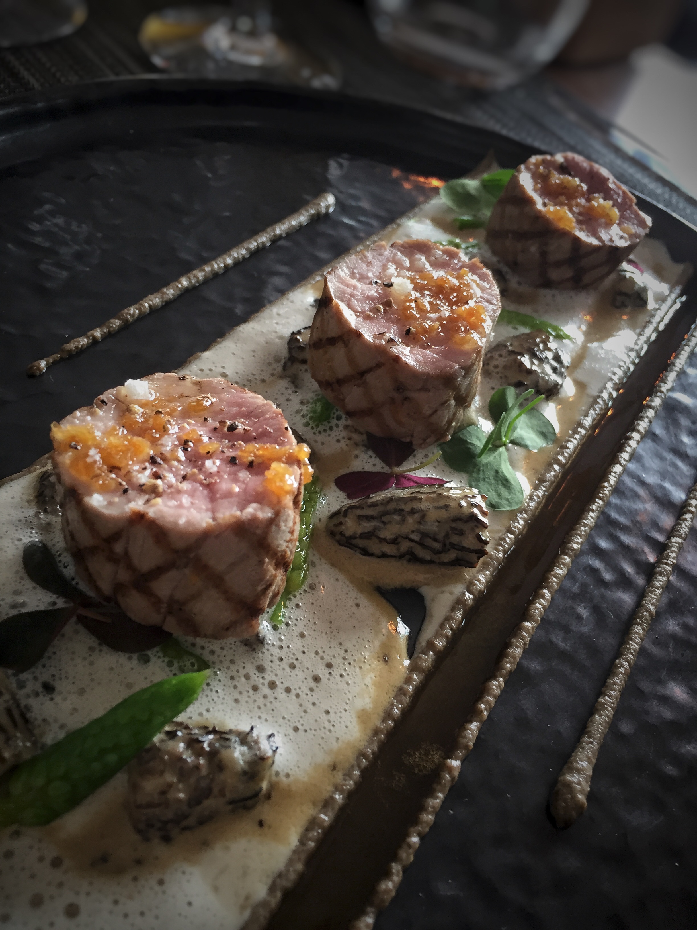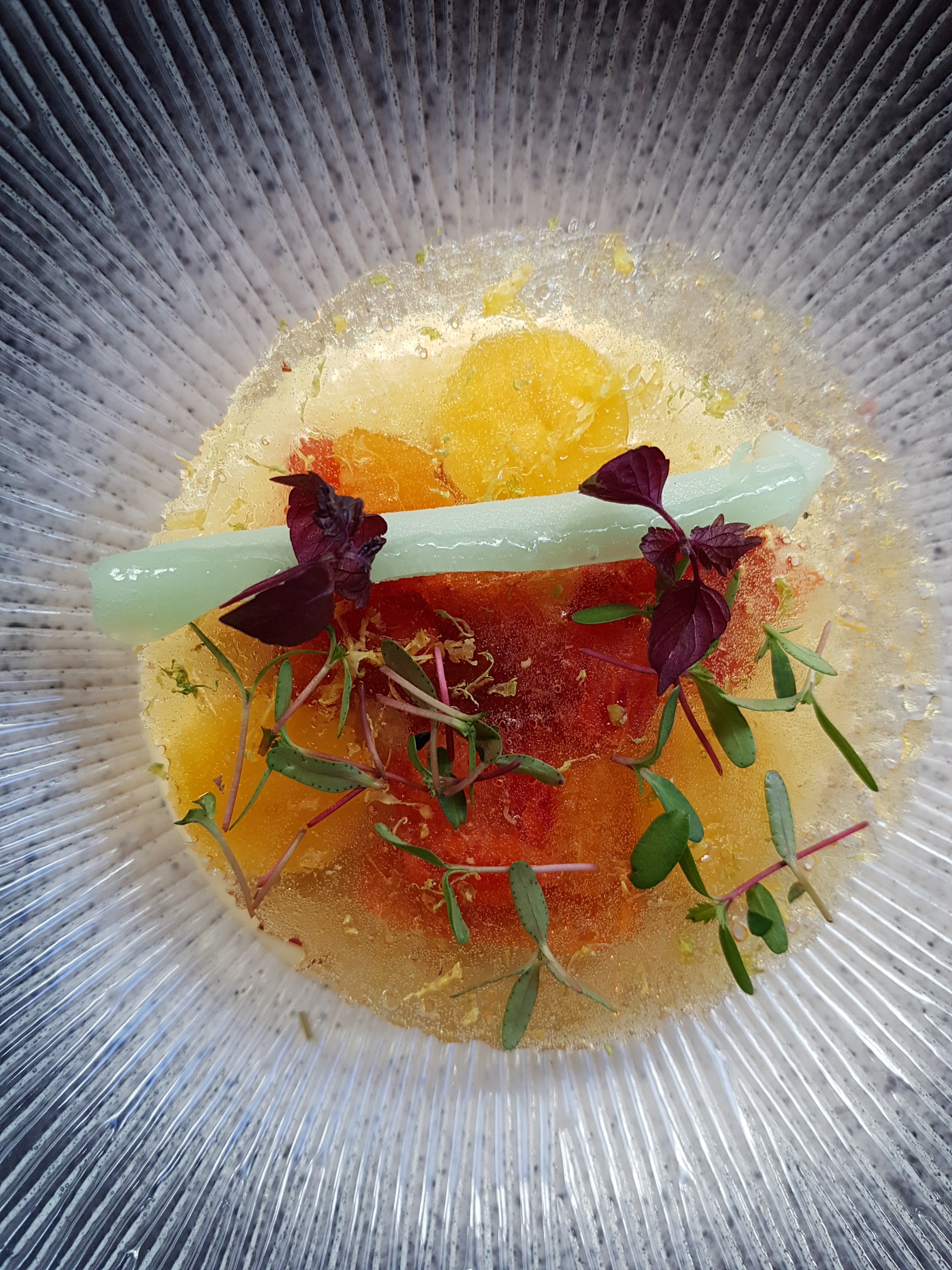 S'il n'y a rien à dire sur le travail de la matière et de la présentation (à part sur le dessert qui est quand même bien plus pauvre que ce à quoi je m'attendais) je n'ai pas trouvé un seul goût que j'ai adoré. Il y a une recherche d'originalité dans les saveurs, ce n'est pas que ce n'est pas bon mais à chaque fois c'était accompagné par quelque chose d'acide ou amer. La Textures de carottes tellement simple qu'on pense être capable de faire ça chez soi. Le plat principal n'a rien d'extraordinaire, je n'ai pas fini l'accompagnement champignons tant ça ne m'a pas plu. Les mignardises à la fin n'ont pas le goût qu'on attend malgré les saveurs simples (fraise, framboise, mangue) avec encore de la bergamote pour bien être sûr d'avoir encore de l'acidulé. Pareil pour le dessert d'abricots.