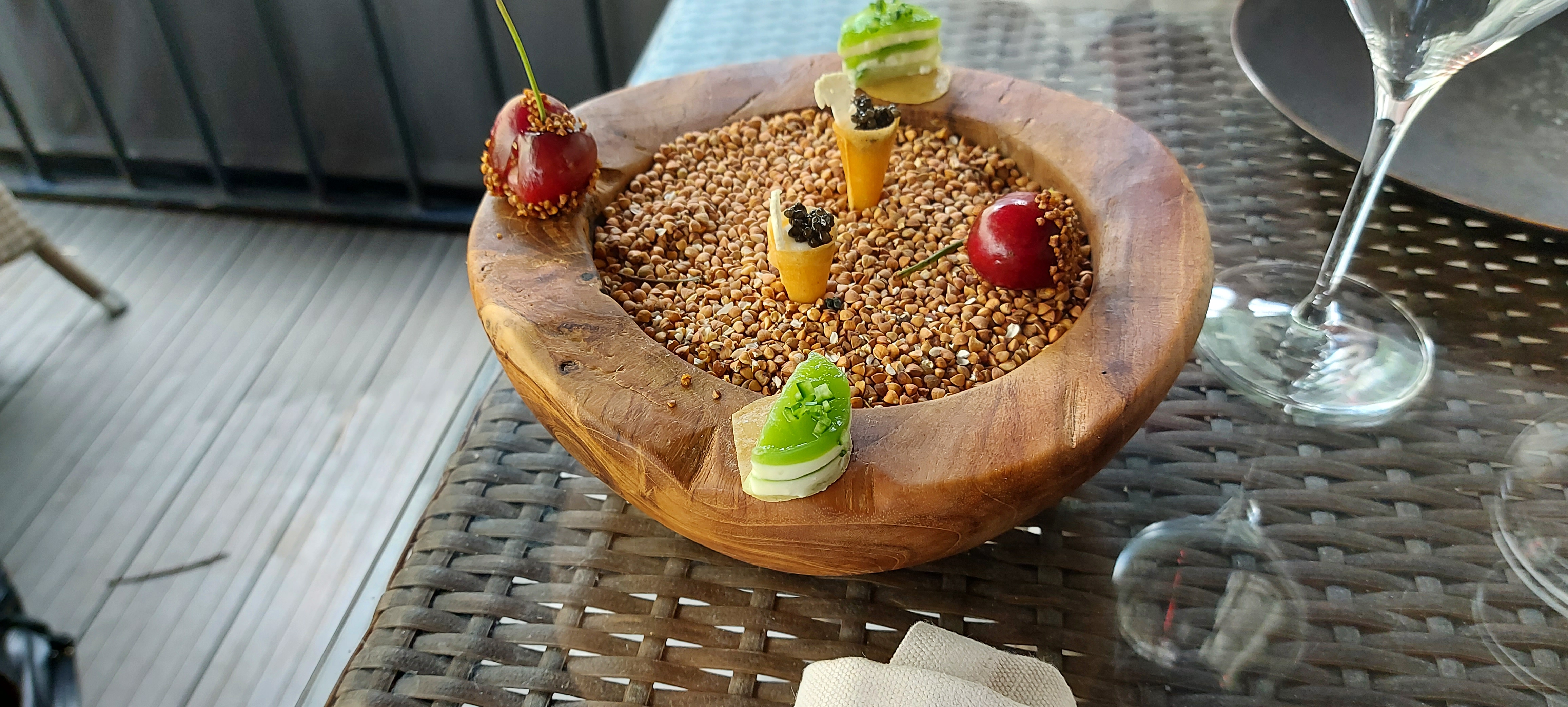 Une merveilleuse soirée sur la terrasse d’un jeune couple de passionnés . Toujours au top niveau de l’émotion grâce à une cuisine inventive et des sauces à tomber par terre ! Soutenez les en ces périodes compliquées post covid , c’est maintenant qu’il faut venir passer un moment inoubliable