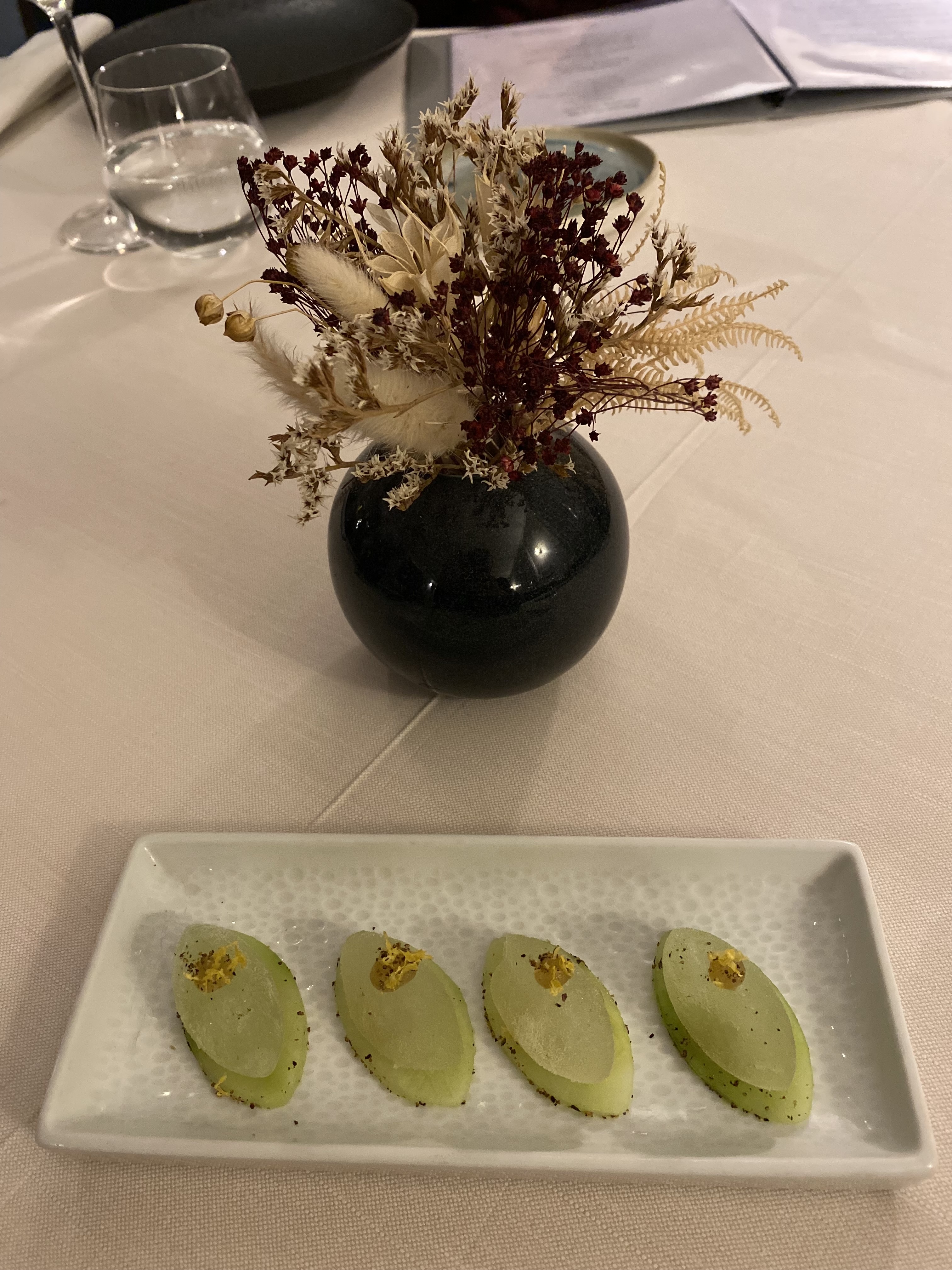De la grande cuisine, d’une maitrise parfaite. Un travail titanesque dans chaque plat mais toujours avec cette touche d’humilité, presque comme si le chef se mettait en retrait, se cachait derrière ses oeuvres. Probablement le meilleur riz vénéré qu’il m’ait été donné de gouter. La salle gagnerait à être un peu plus chaleureuse - déco un peu intimidante et pourtant pas si chic - et le service un peu plus cadré (quelques flottements parfois, notamment lors de l’arrivée).