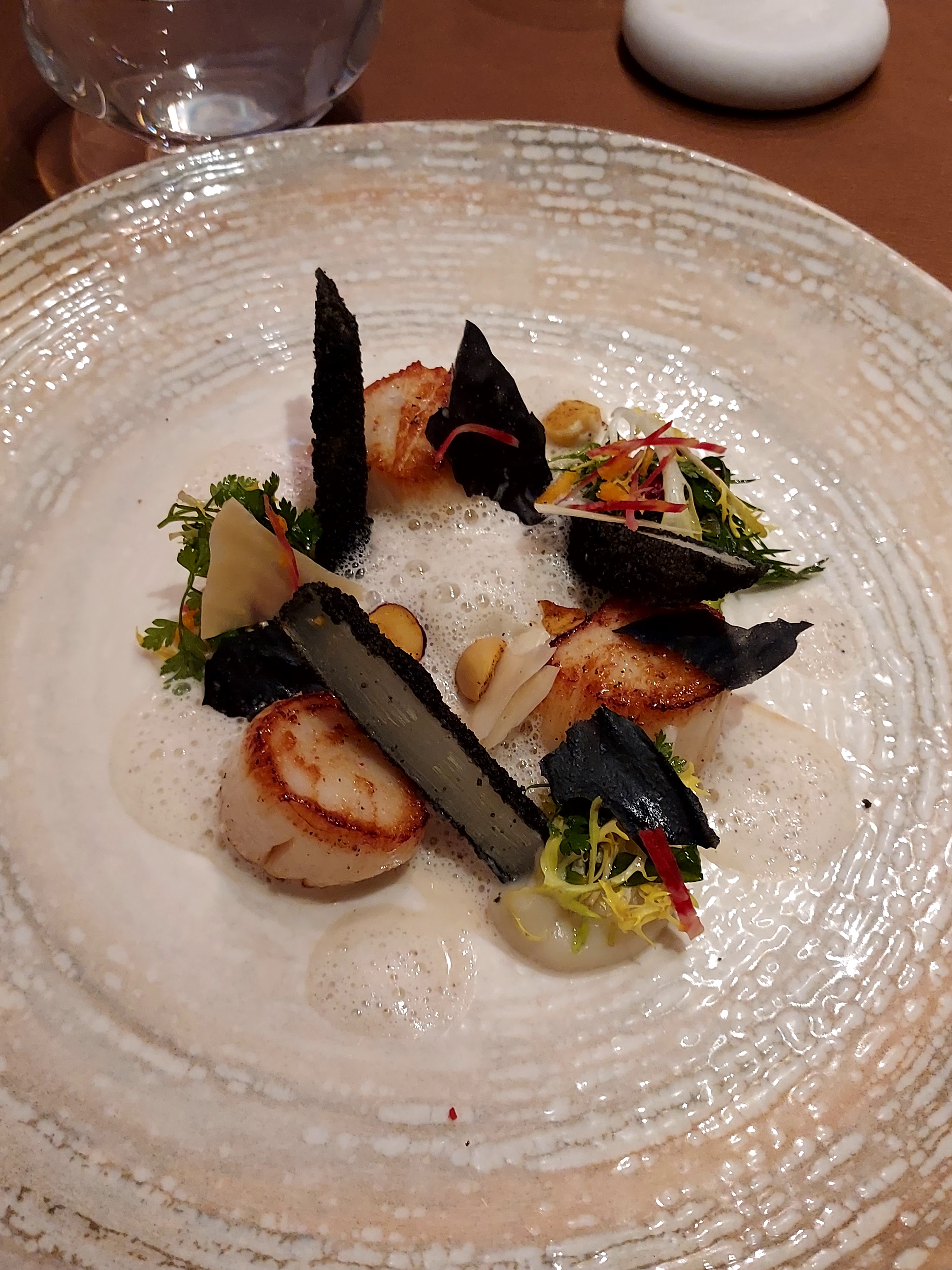 Vraiment excellent menu dégustation de 11 plats. Superbe exécution, saveurs intenses. Tout était parfait. La meilleure chose était probablement la coquille Saint-Jacques poêlée à la truffe blanche. Service efficace et agréable. Pas bon marché mais très, très haut niveau.