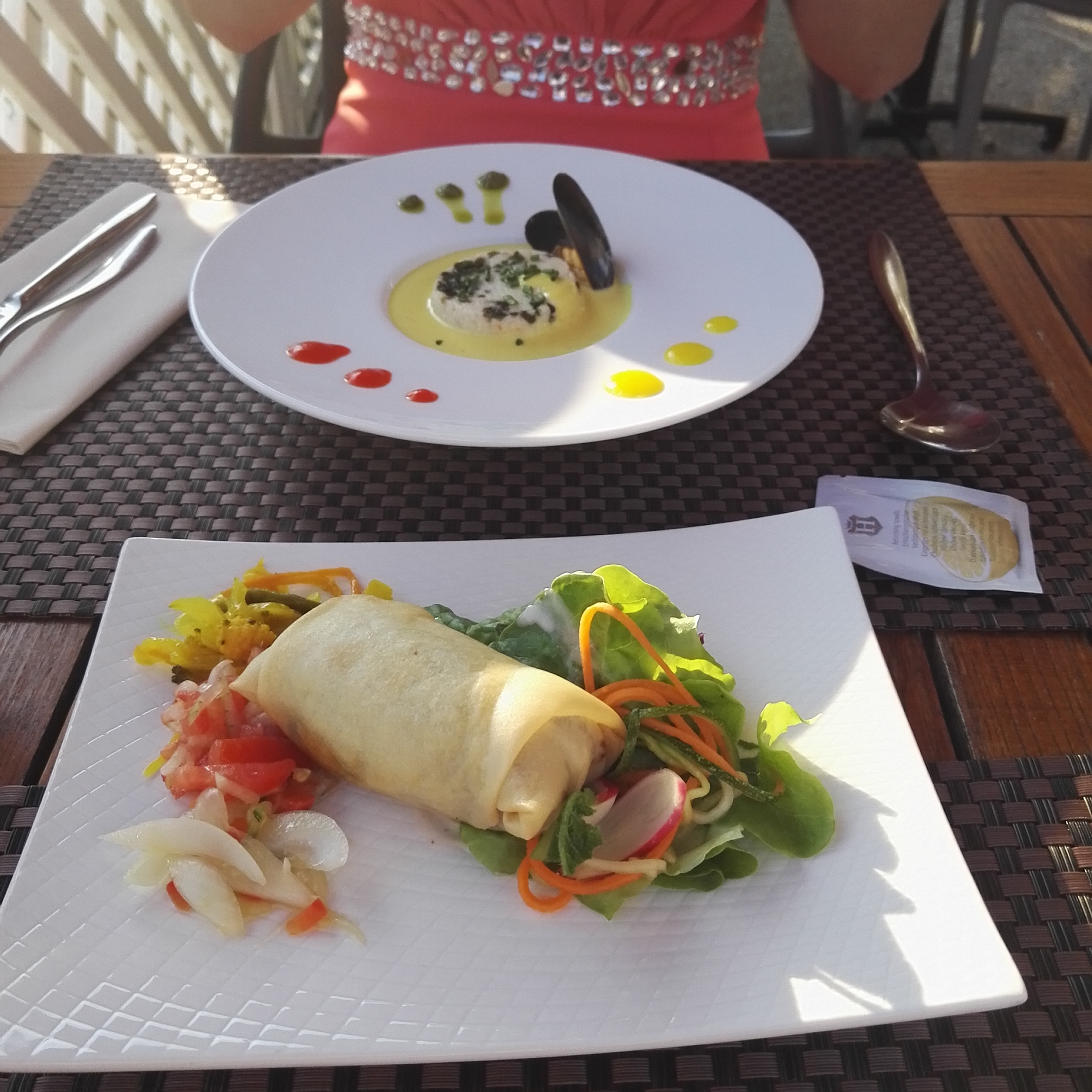 Repas fin et épicé, une ambiance super, comme les serveurs avec toujours de l'humour, dépaysement total, et une jolie vue sur la mer. Tout simplement parfait !