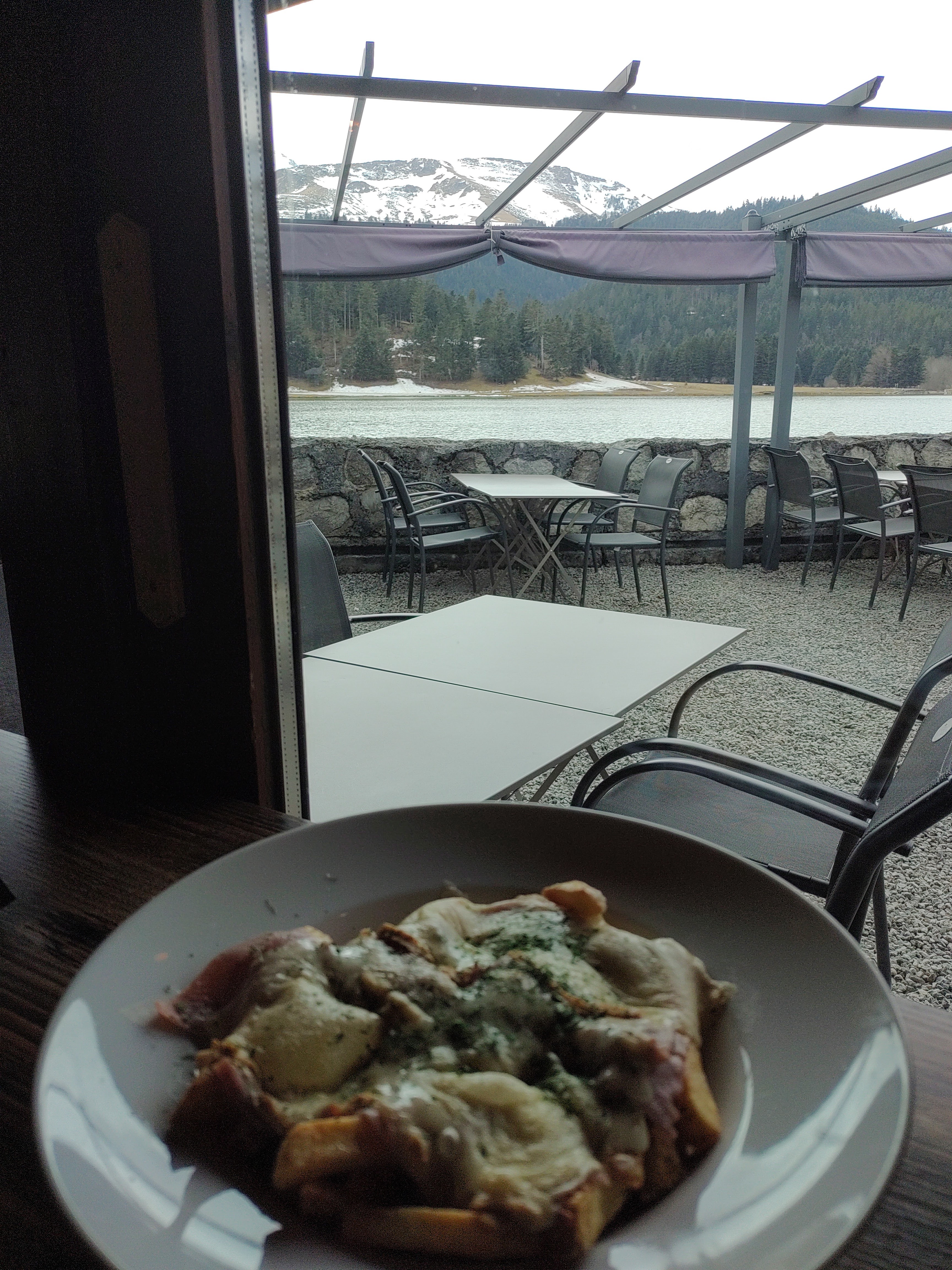 Localisation parfaite avec une vue imprenable sur le lac et les cimes enneigées. Repas très bon et prix correct! Bonne adresse