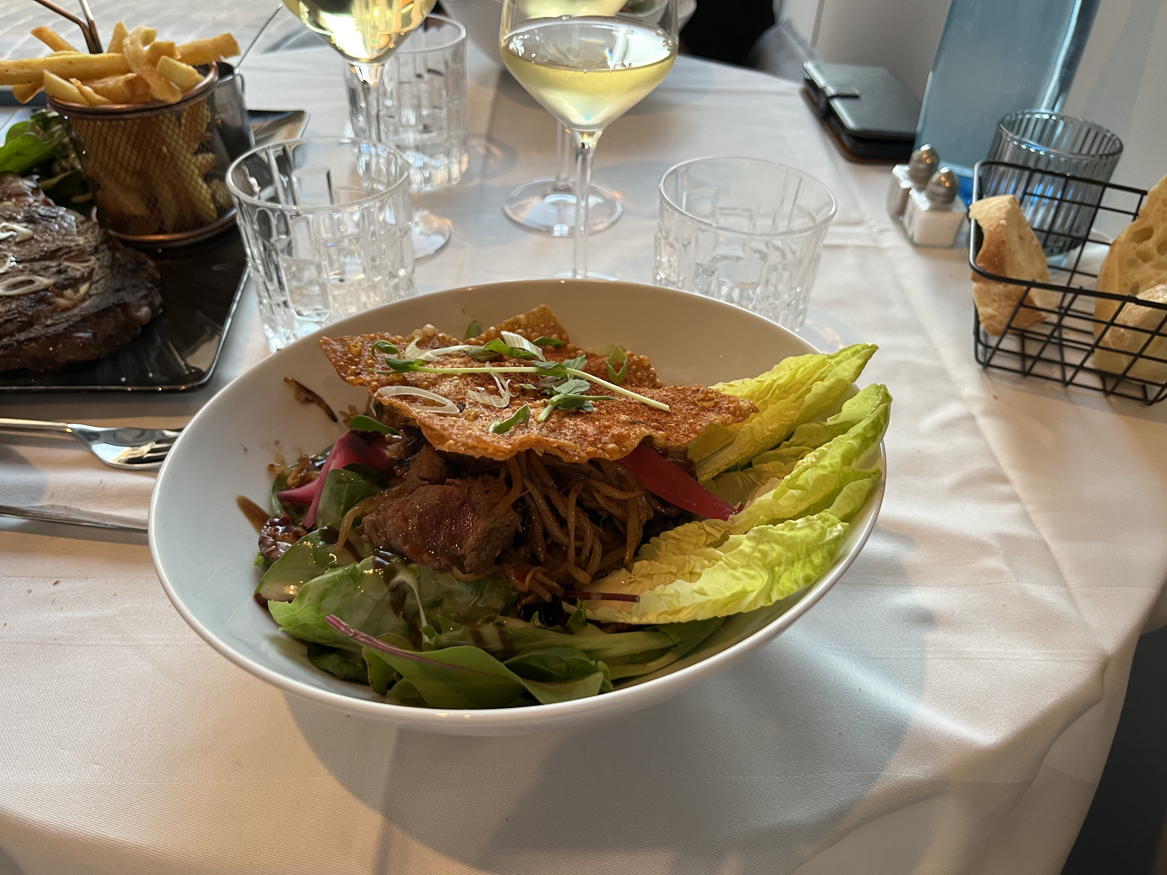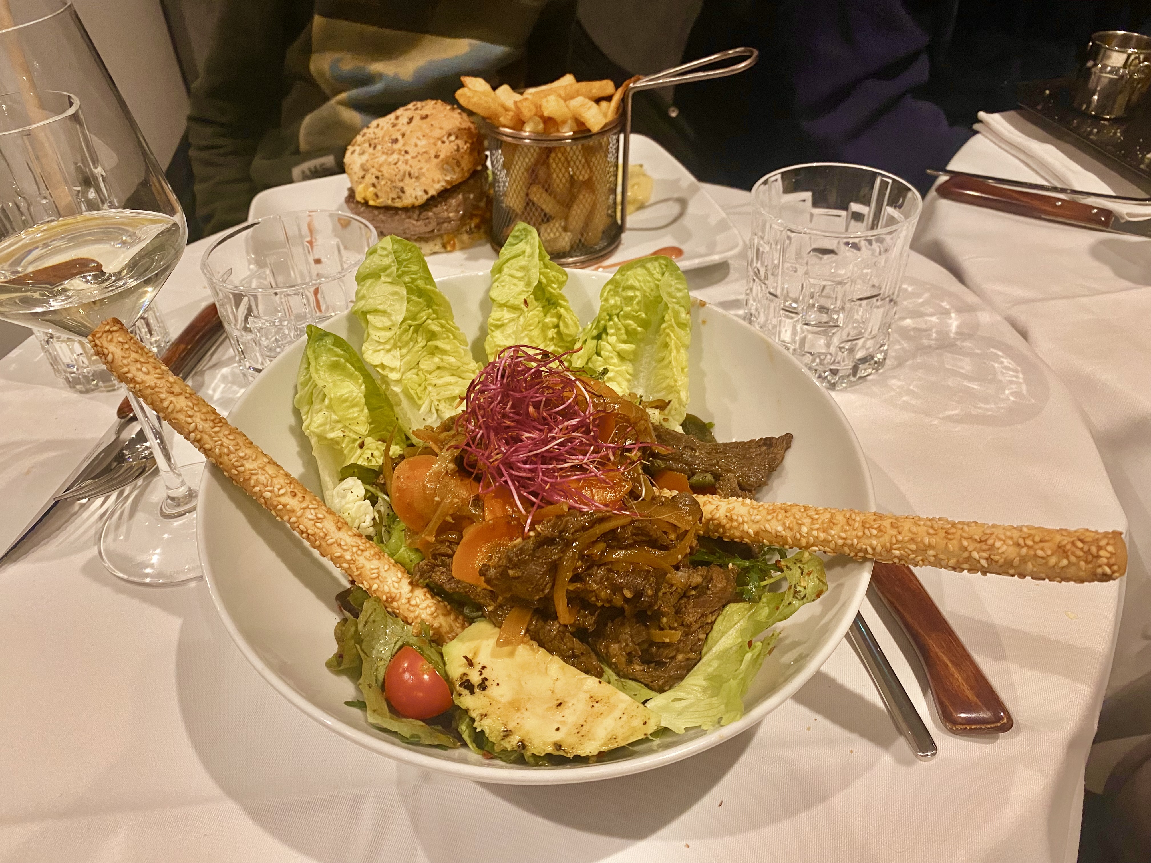 Déçu vraiment le début de la soirée bien Coupe de champagne, suivi par un petit foie gras bien entendu la je ne comprends pas 35mn pour un magret de canard rose et une salade de bœuf marinée je suis moi même chef de cuisine je ne comprend pas. Les plats arrivent mais plus faim.Déçu mais vraiment.
