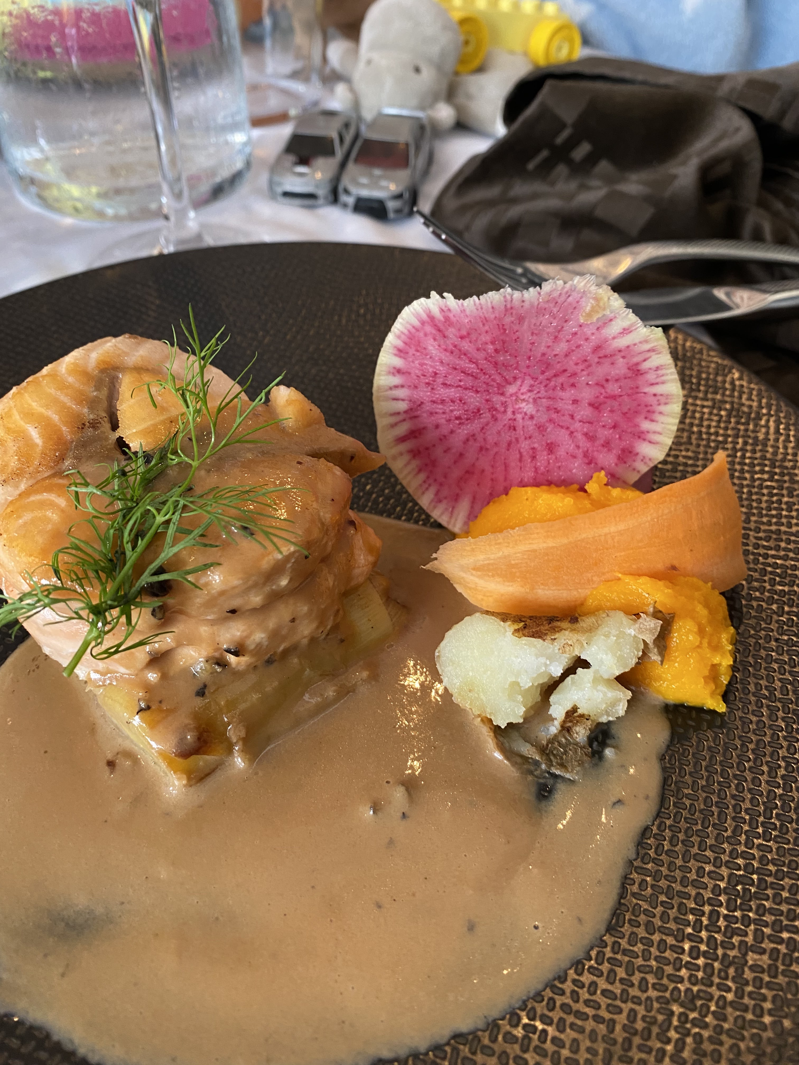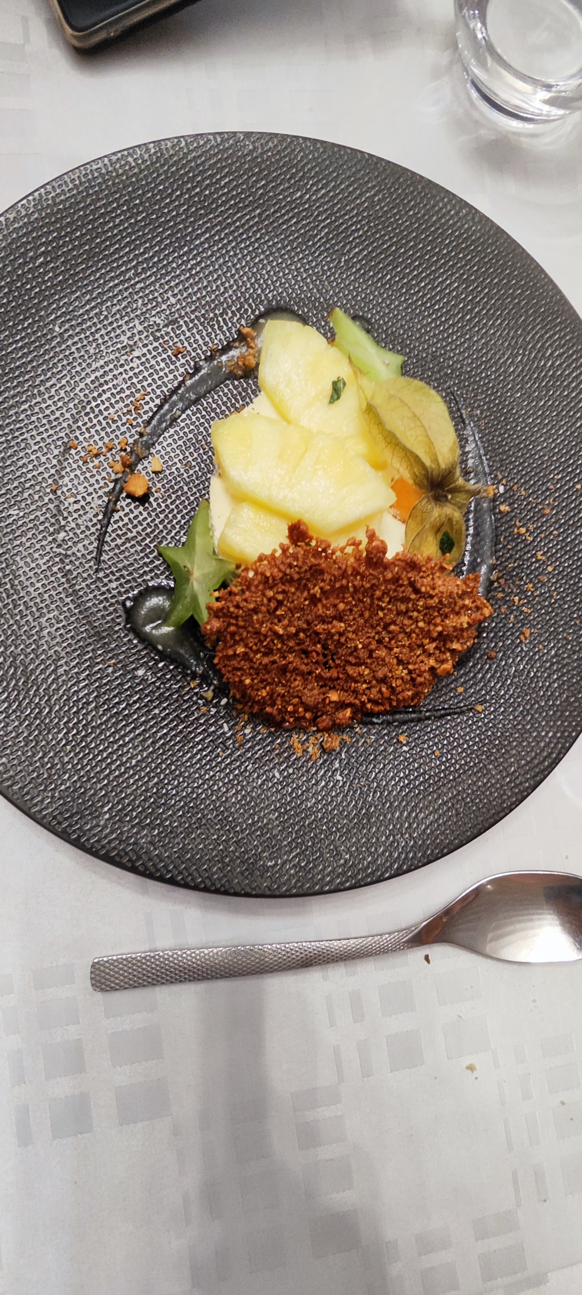Nous avons trouvé le repas plutôt classique, le poisson était trop cuit, l’option végétarienne ( alors que prévenu une semaine à l’avance ) n’est qu’un assortiment de tout les accompagnements des autres plats et c’est décevant surtout en vu du prix un effort de création pourrait être fait quand le restaurant en est informé une semaine avant. Les dessers étaient moyens à notre sens en tout cas. Le service et un peu lent une deuxième personnes peut être serait la bienvenue pour un service plus fluide ?! Le rapport qualité prix est donc un peu en dessous des espérances
