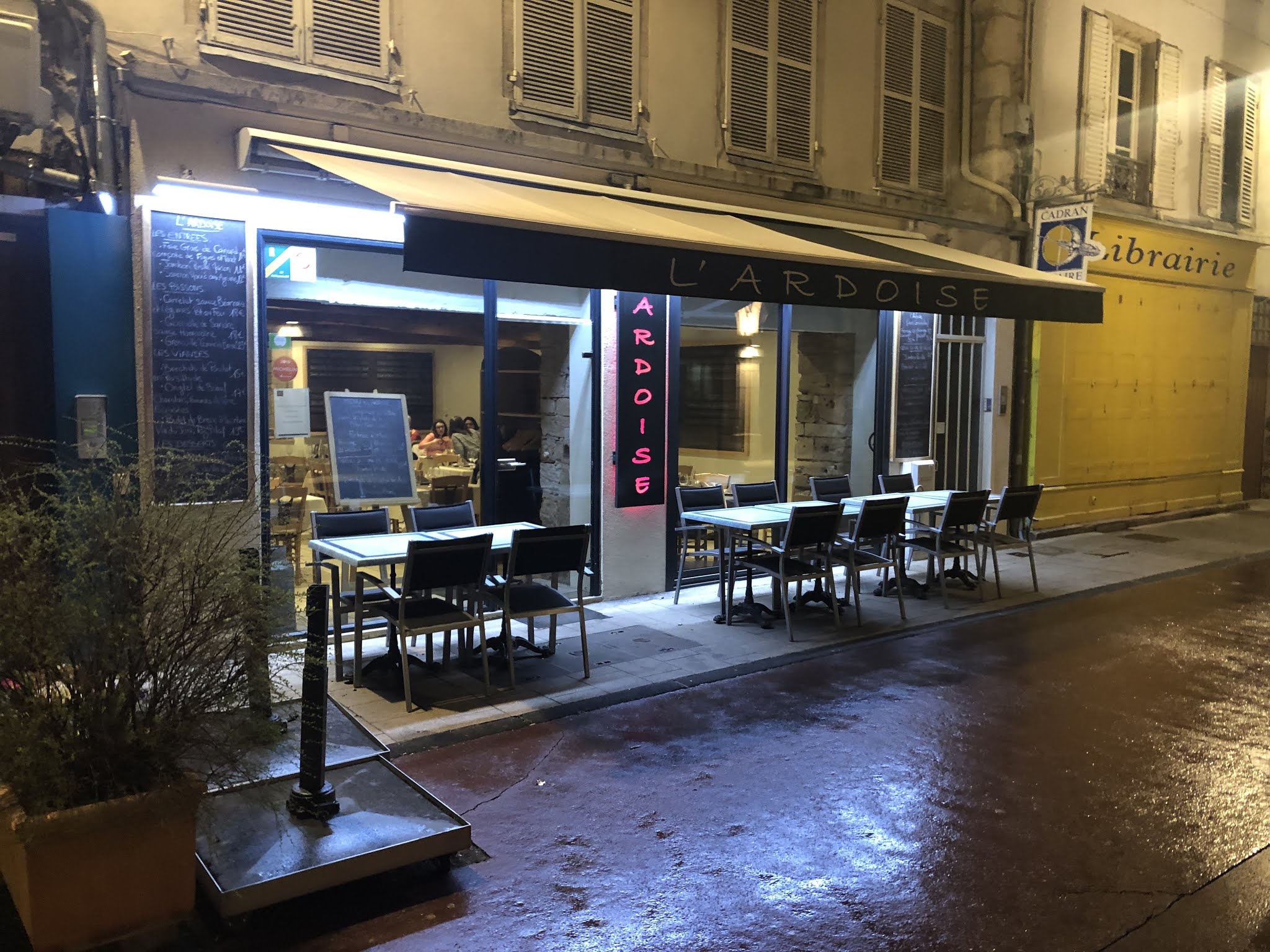 Hier soir j’ai vécu une expérience incroyable au restaurant l’Ardoise. L'atmosphère était chaleureuse, le personnel sympathique et attentionné et la nourriture exquise. J'ai essayé une délicieuse salade suivie d'un des meilleurs morceaux de bœuf que j'ai jamais mangé, accompagné d'un délicieux lit de pommes de terre. Les vins qui accompagnaient le dîner étaient parfaits. Pour finir, nous avons dégusté un assortiment de fromages et un irrésistible moelleux au chocolat. Je vais certainement revenir! Hautement recommandé