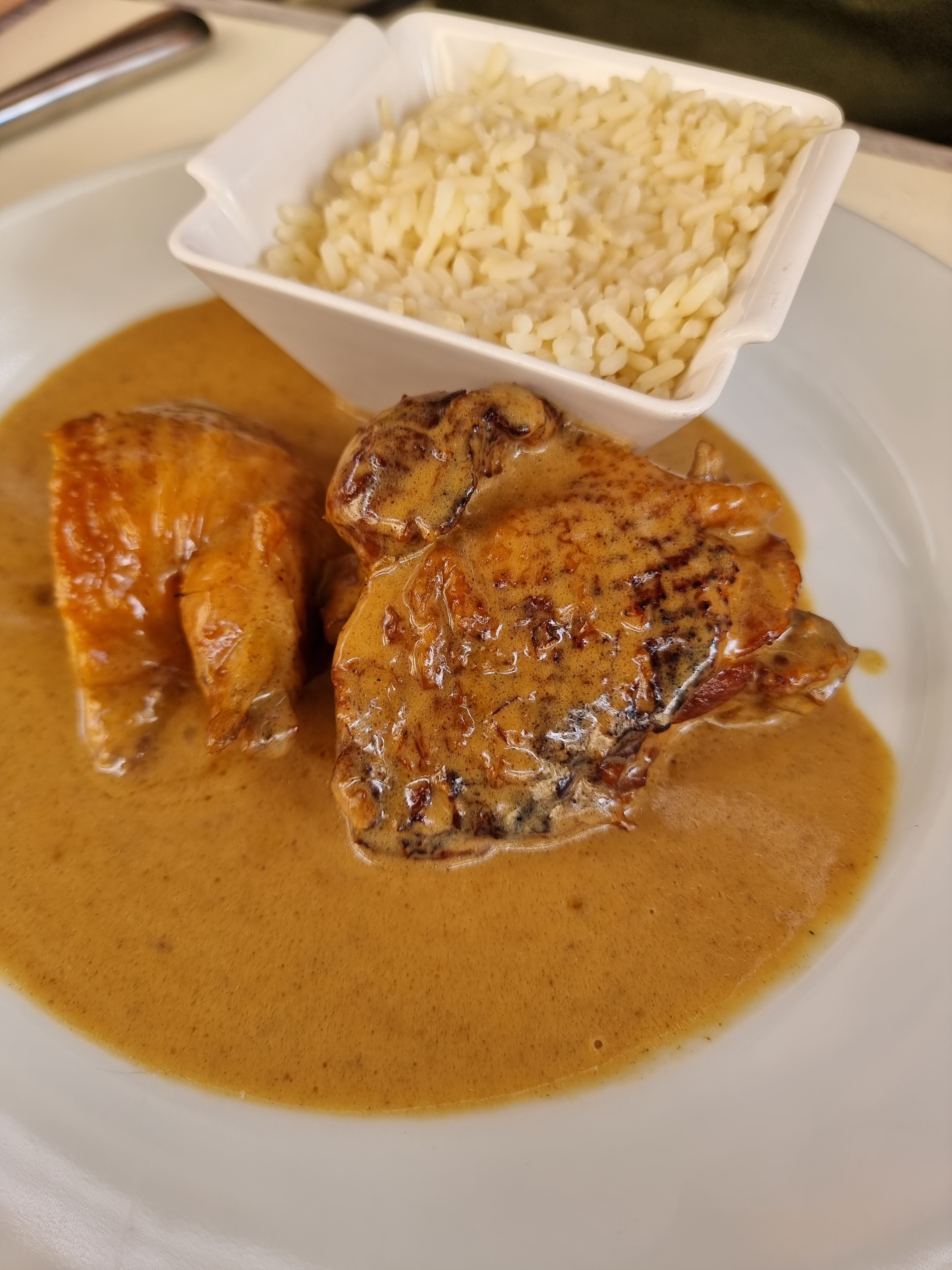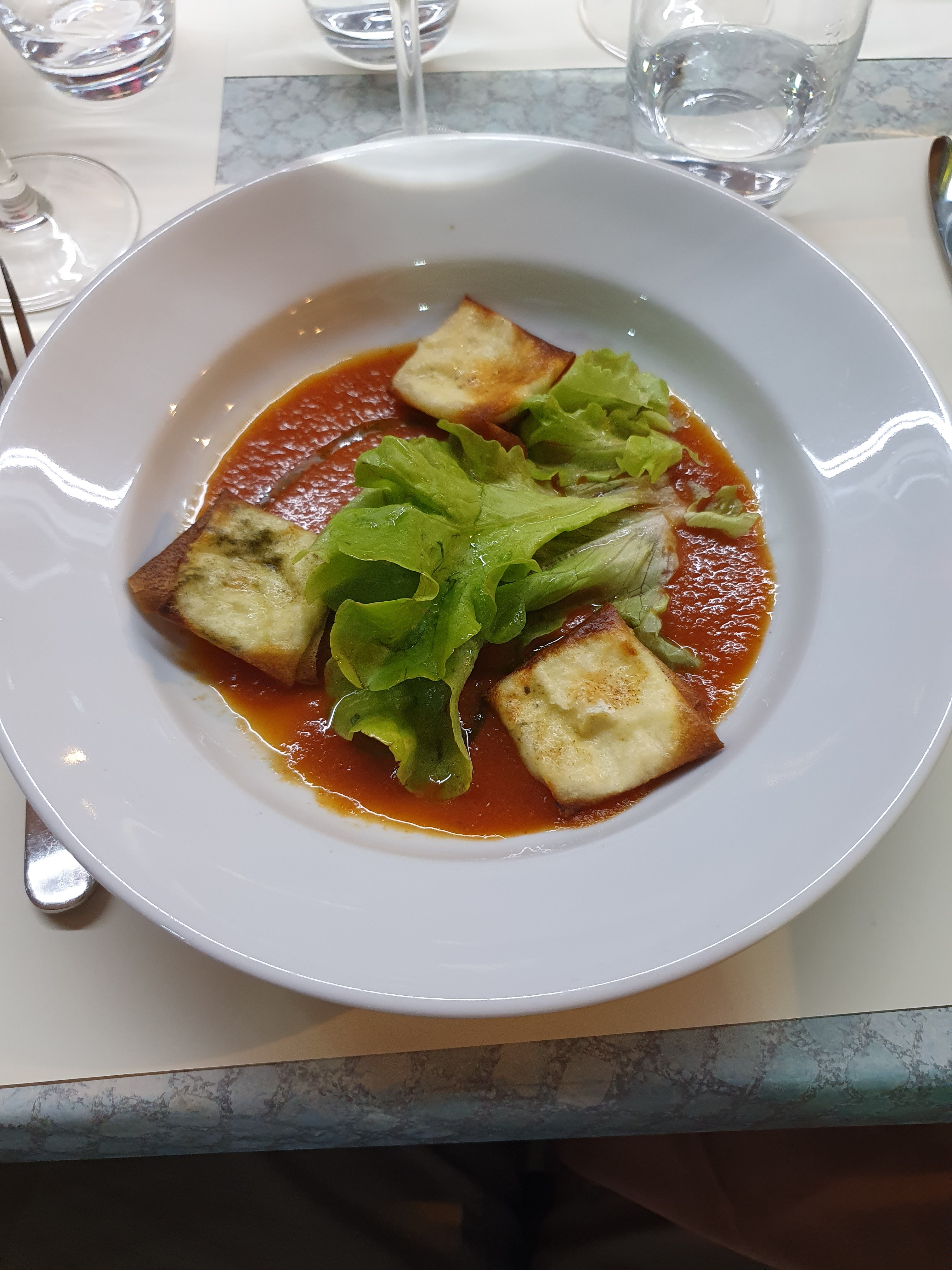 Repas bon mais chère je trouve et la serveuse agréable mais pas reseptive au blague. Et les grenouille trop cuite à mon goût. Mais le vin j'ai pris du blanc et très bon. Et hygiène super avec le covid.
