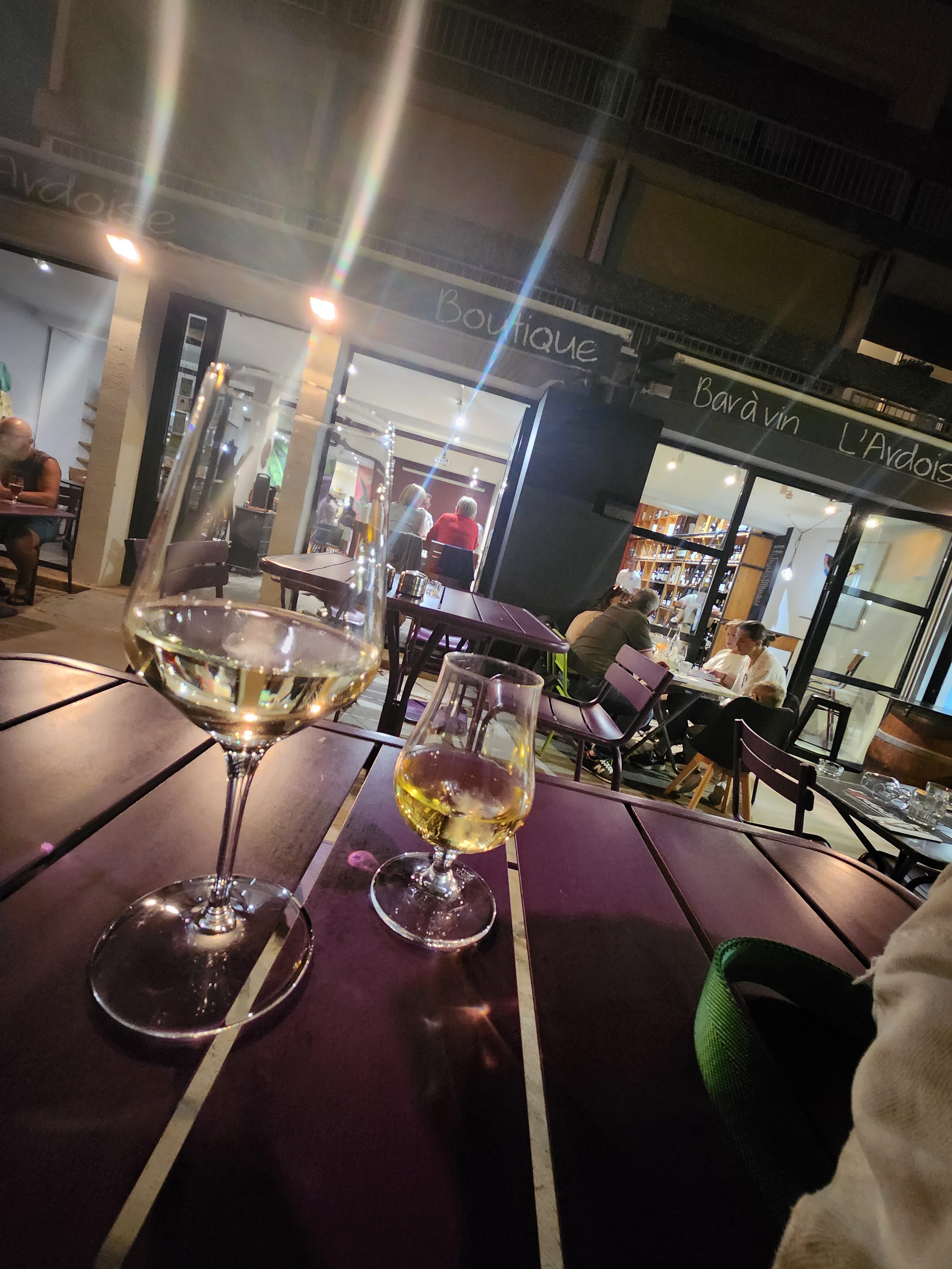 On y a pas mangé, ça sera pour nos prochaines vacances à Greoux les Bains. On a bu un verre enfin des verres lol Et le personnel jeune et super sympathique. Prendre le temps de discuter avec les clients comme ça c'est super sympa merciiii On y a goûté quelques vins ,un ptit amaretto pour moi ^^ merciii pour le digestif découverte farigoule offert 😊