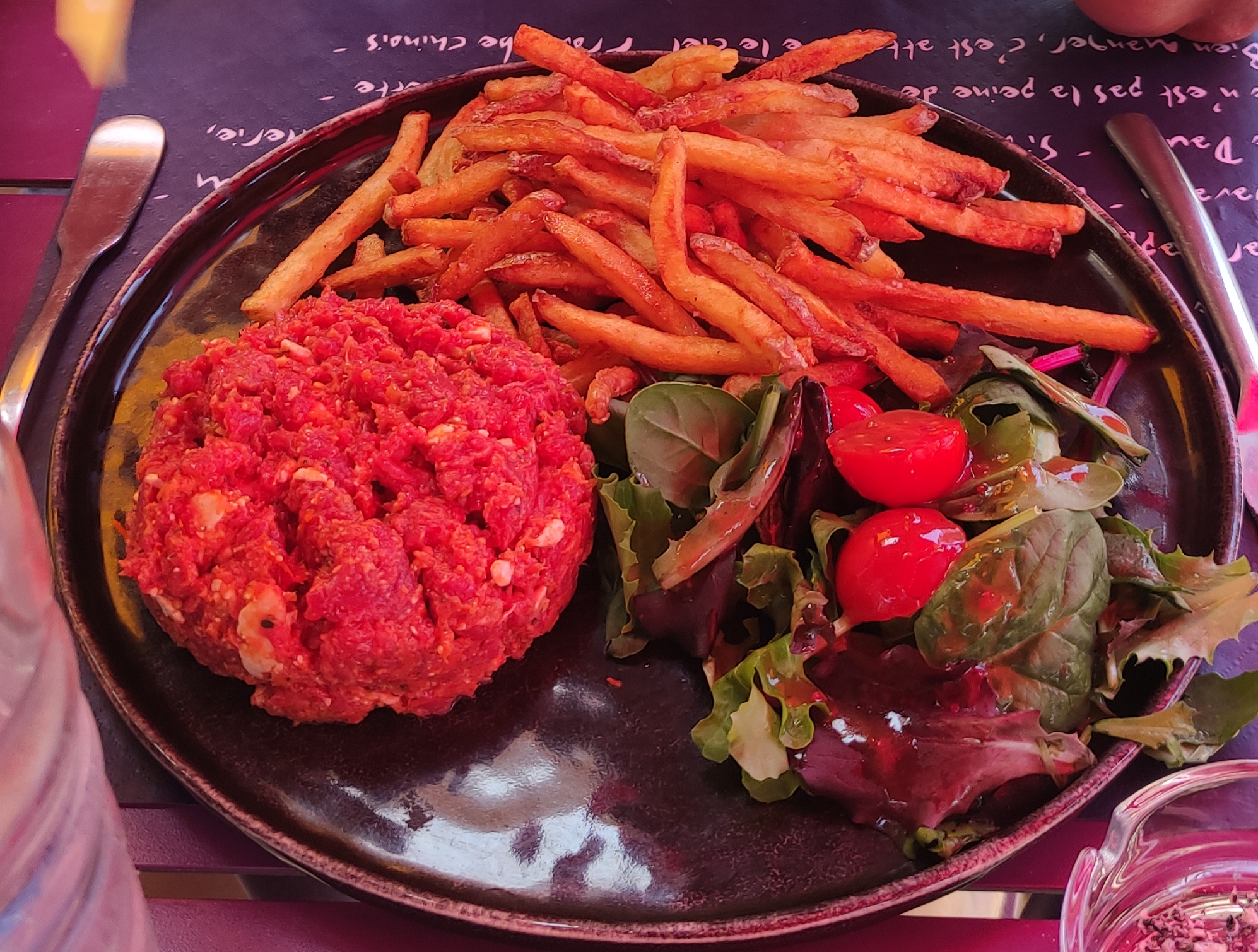 Un tartare coupé au coup à tomber par terre, la quantité n'est pas négligée. Rapport qualité prix très satisfaisant. Je recommande vivement.