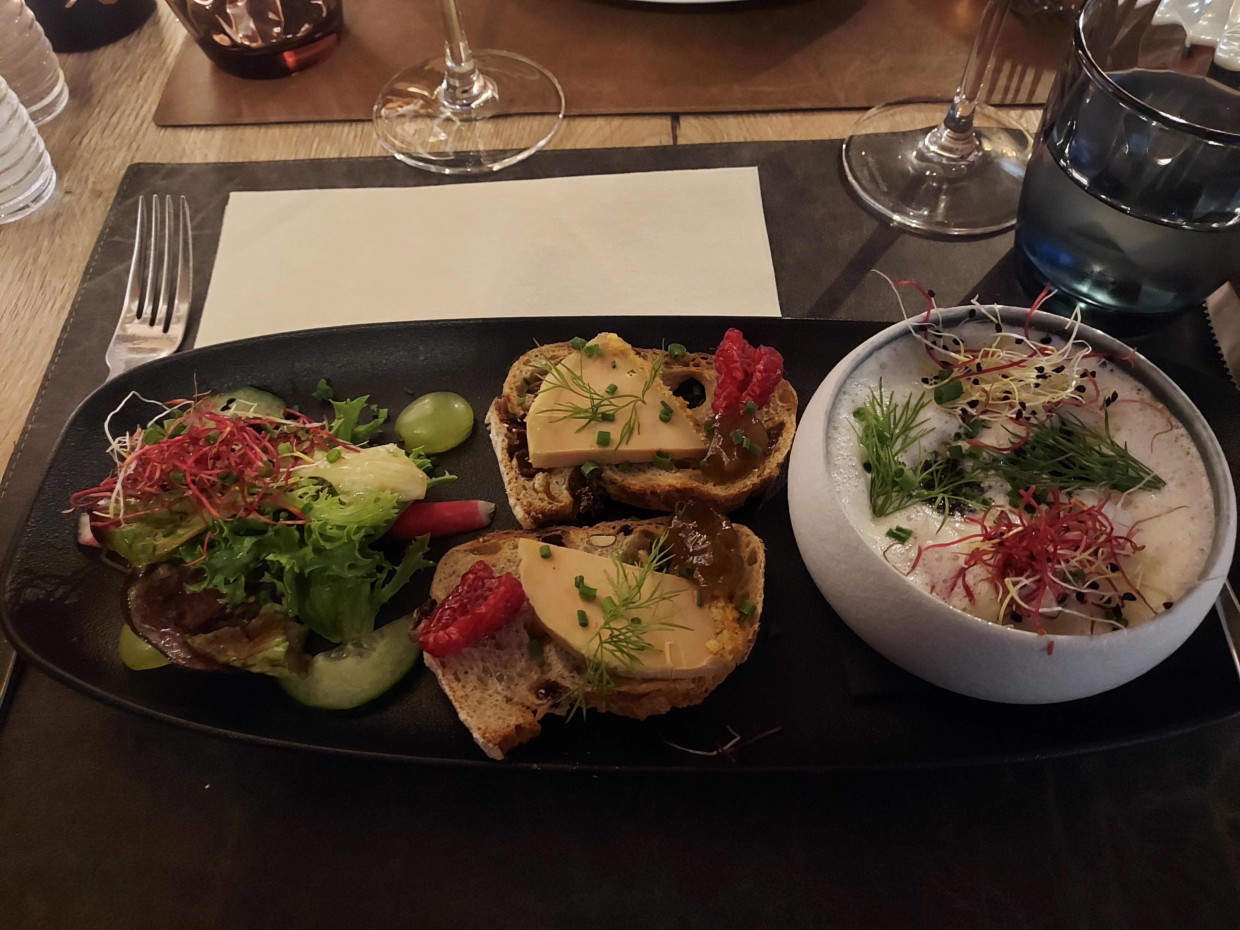 Exceptionnel une serveuse très agréable et souriante . La qualité des plats très savoureux le foie gras splendide. De l'entrée au dessert des plats fais maison. Prix très raisonnable. Nous avons adoré cette endroit nous y retournerons. Je recommande à 💯