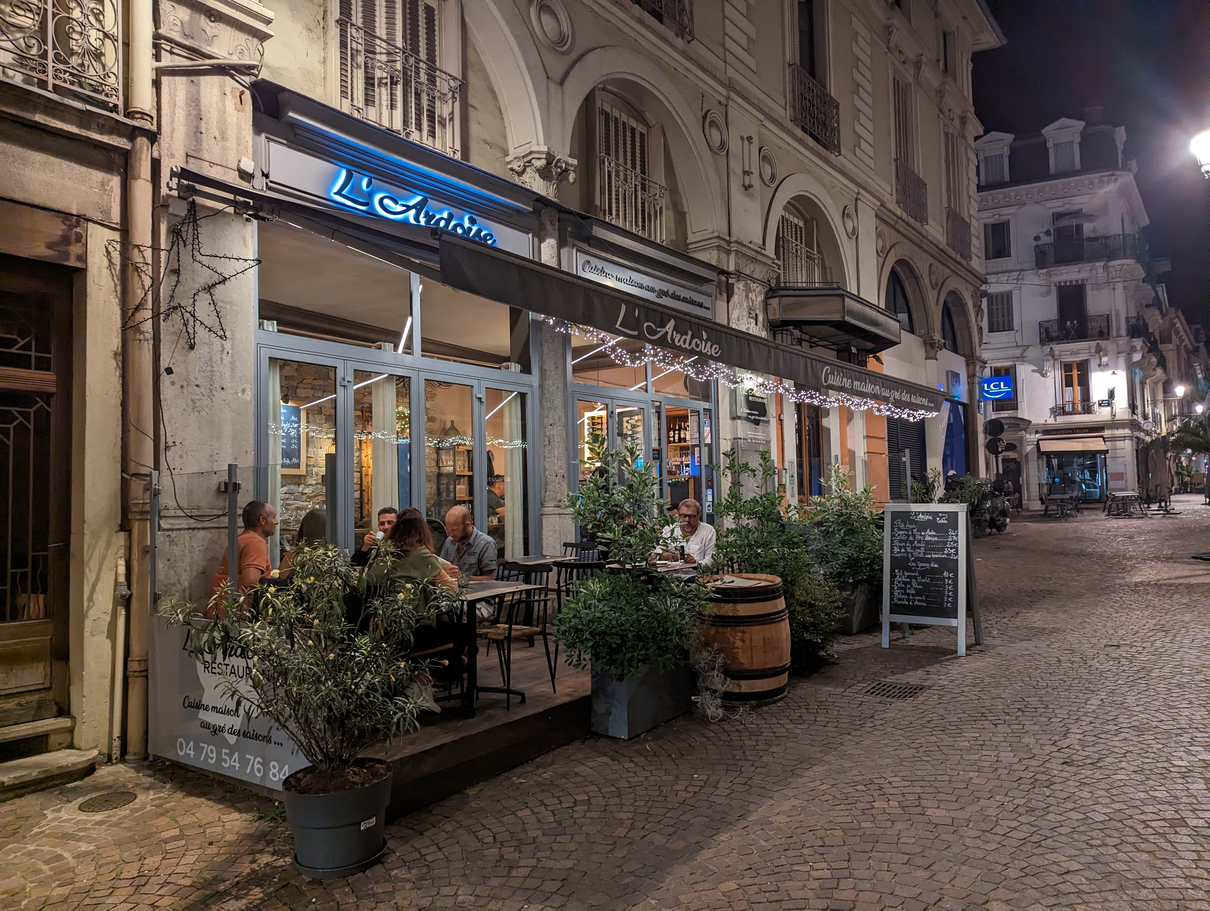 Nous avons passé un agréable moment à l’Ardoise, vin et plats délicieux dans un restaurant très bien décoré. Les serveurs/se sont très professionnels et souriants. Pensez à réserver surtout les jours de marché nocturne et lorsqu’il y a des animations dans la ville.
