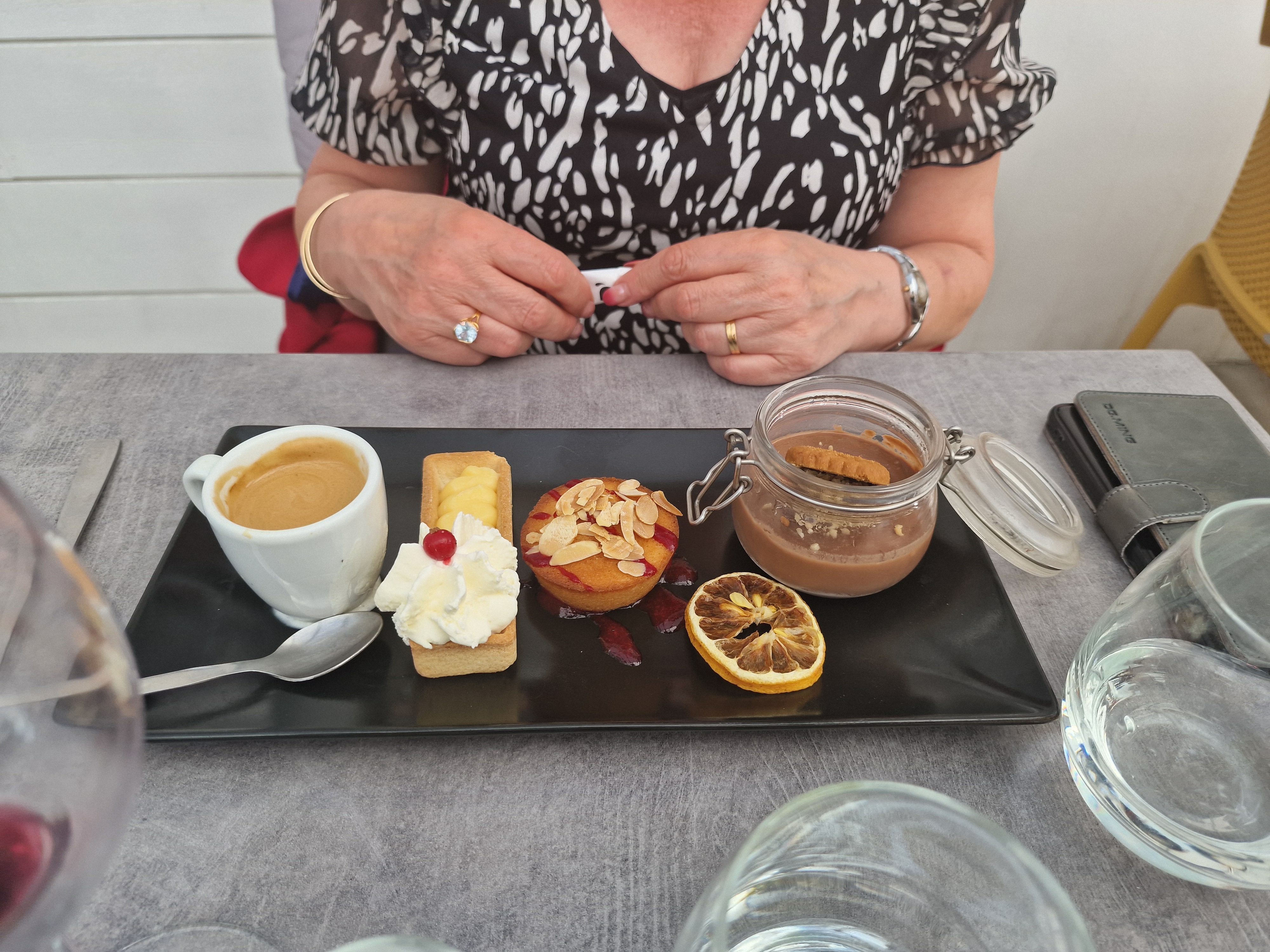 Déjeuner de ce samedi midi. Un ravissement pour les papilles. Plats (poisson) et dessert (glaces) à un très bon niveau de qualité. Vin d'un excellent rapport qualité-prix. Et aussi et surtout, un service avec les conseils et le sourire. Une très belle découverte pour nous. Merci !