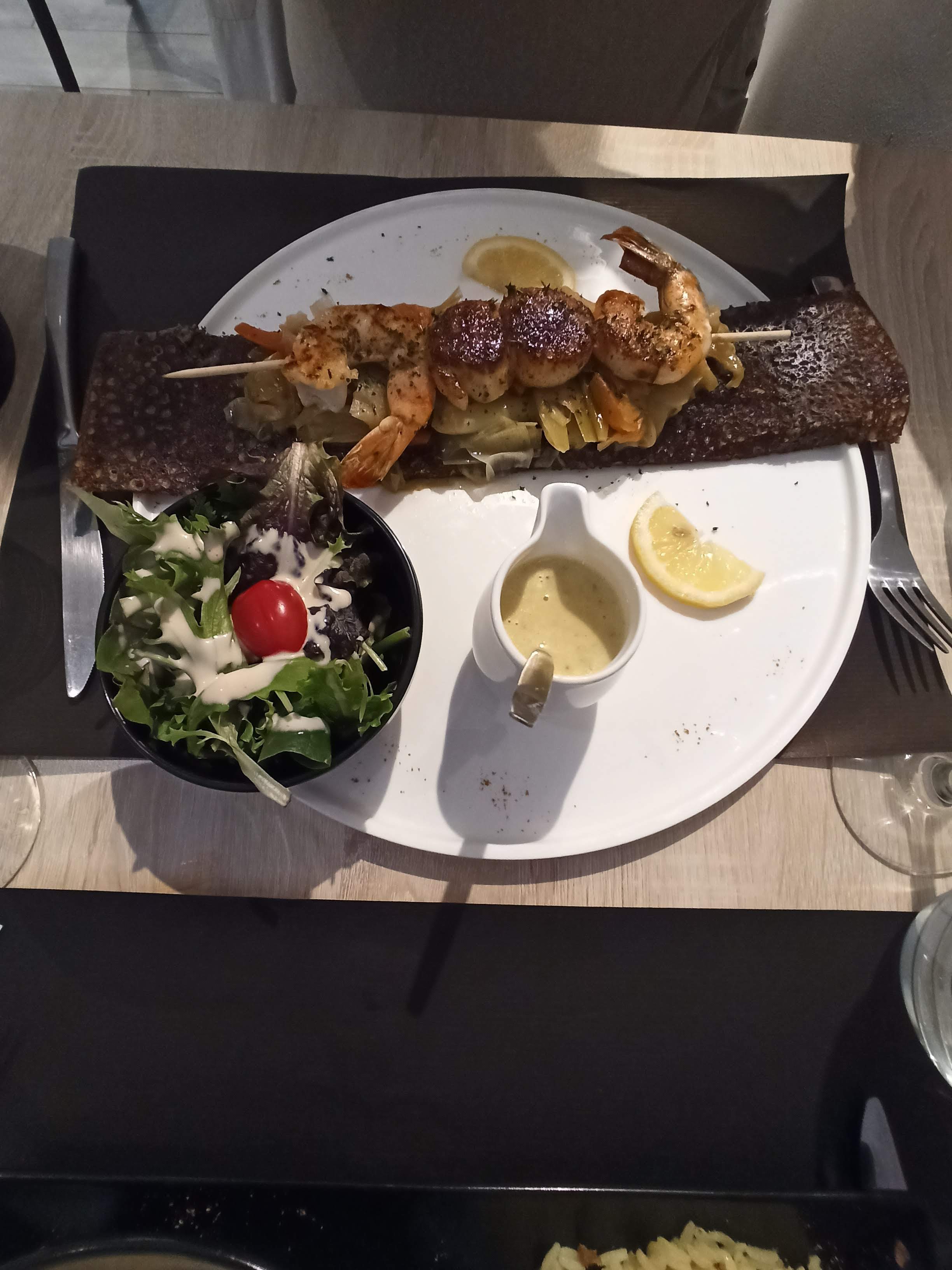 Un sans faute ! Équipe bien organisée, cuisine délicieuse, (je n'avais jamais dégusté une aussi bonne galette!) cadre spacieux et agréable, excellent rapport qualité prix ! Top !