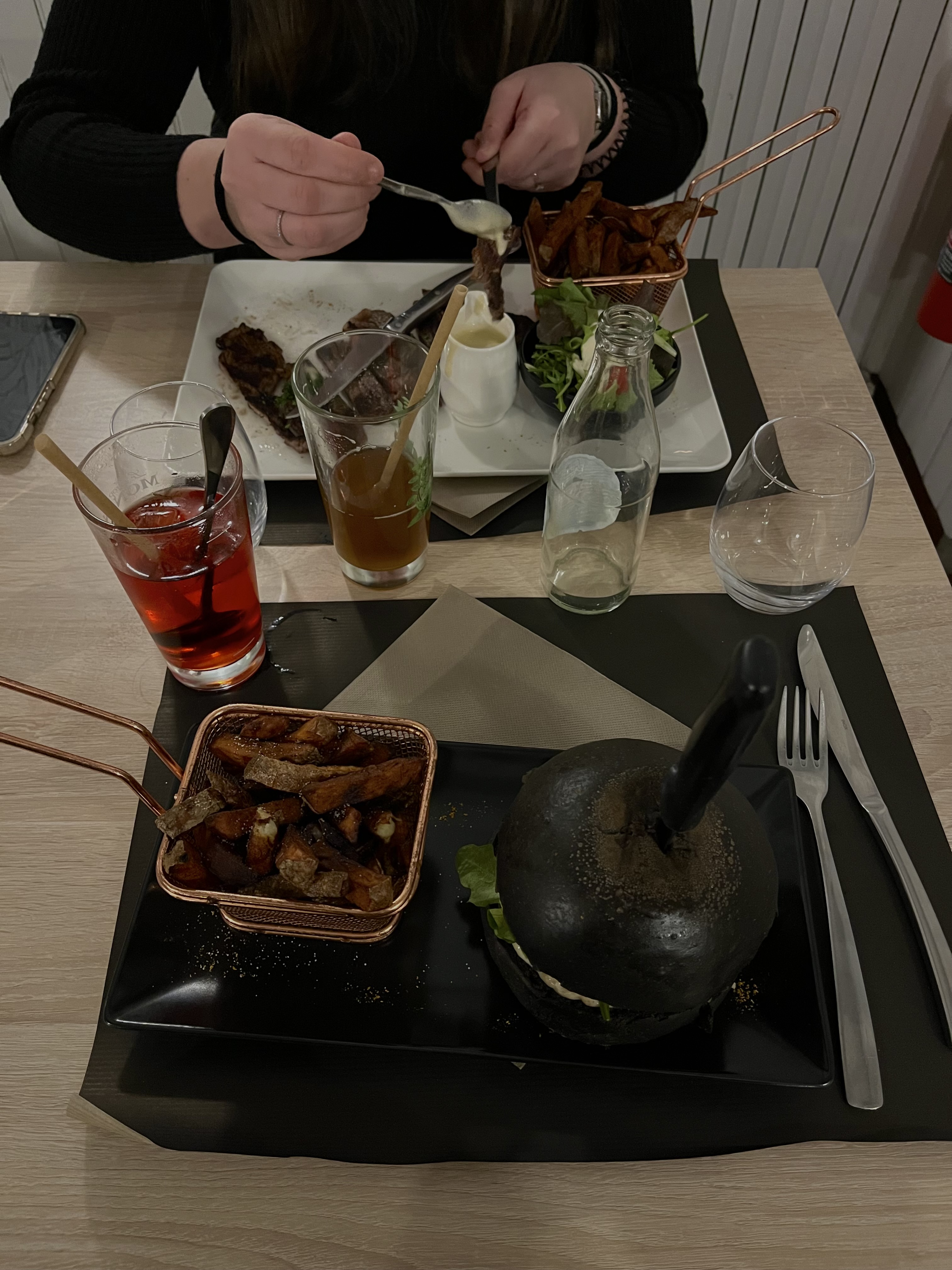 Attente très très longue, environ 50mn avant d’être servi. Le pain noir du burger n’apporte rien de spécial au contraire. Les frites paraissaient recuite, certaines tables arrivées après nous on été servies avant. Ne vaut pas son prix.