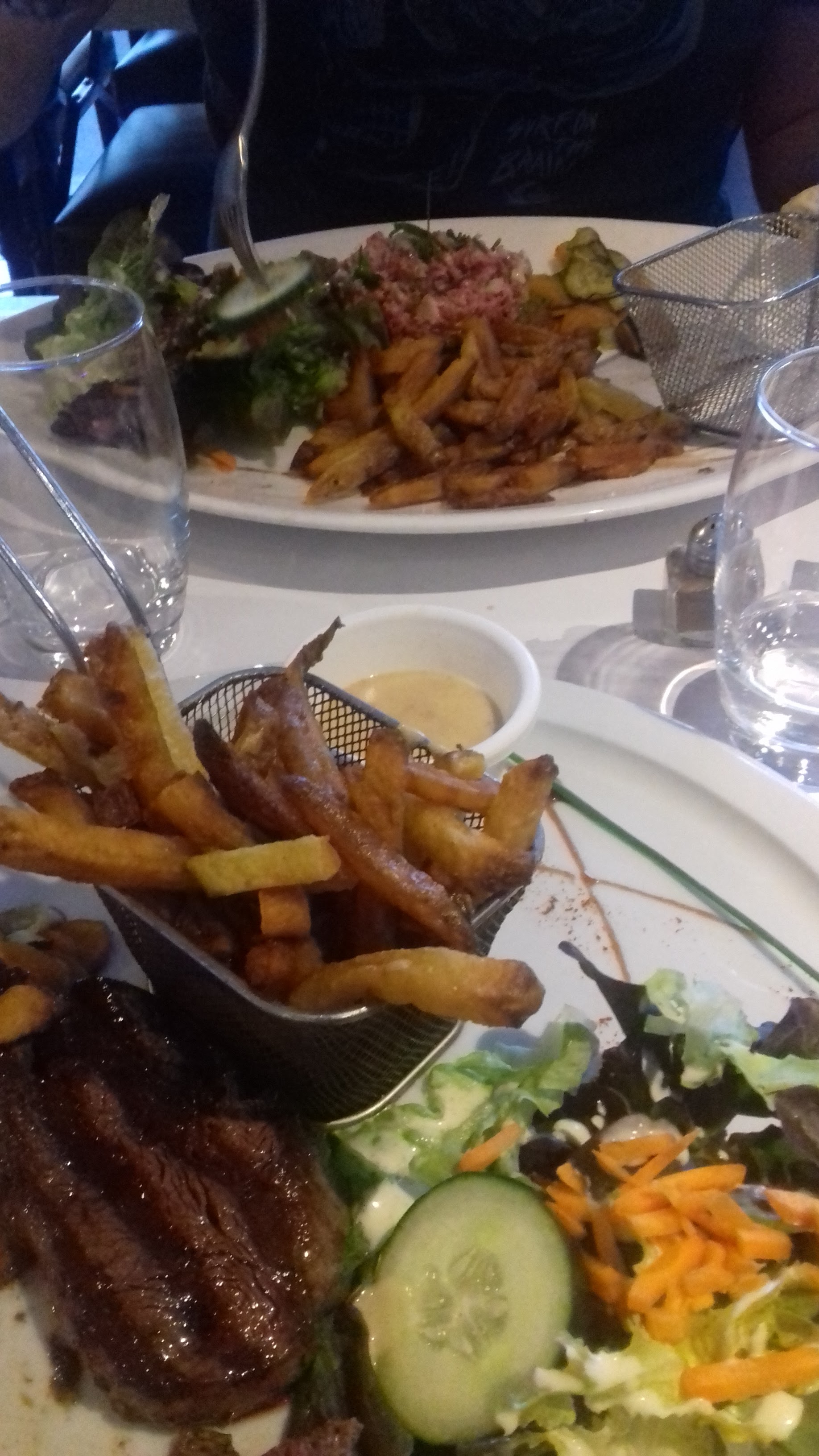 Le soir en semaine, pour les entrées , c'est OK, sans plus. Pour les frites, c'est du recuit du midi, immangeables. Burger viande, correct, pour le végétarien, sans plus, il faut améliorer. Dessert comme partout, assiette de fromage , correct , salade avec mais assaisonné en cuisine.