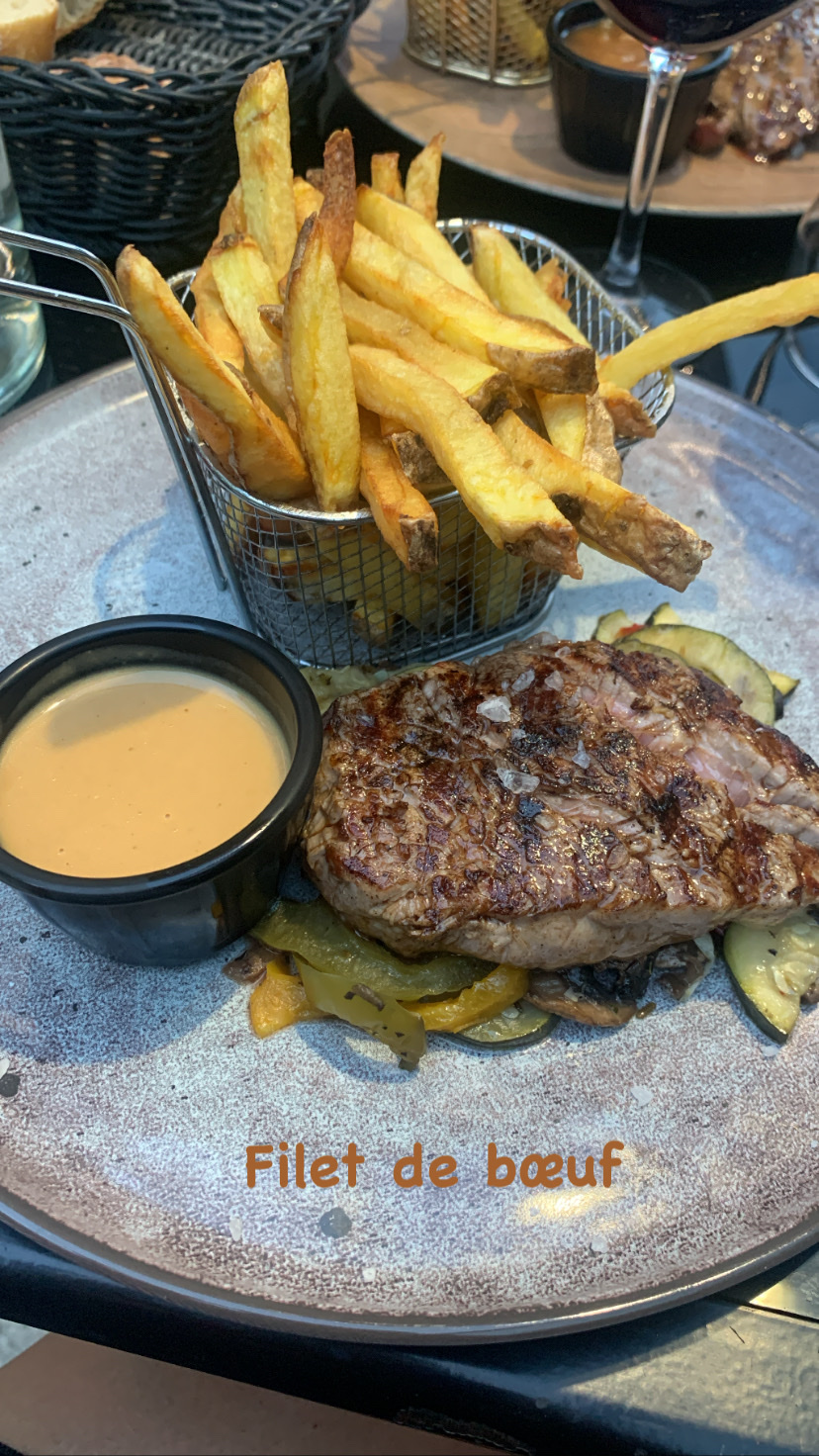 J ai pris le camember rôti aux pommes. L idee est superbe. Presentation élégante Mais déçue de la qualité Frites trop cuites et servies froides Louper des frites sacrilège. Une Petite salade verte 1 Demi feuille dans un petit recipient ou il est difficile de la couper. Je trouve le plat peu généreux et le prix trop élevé. Le prix du midi, lui convient mieux