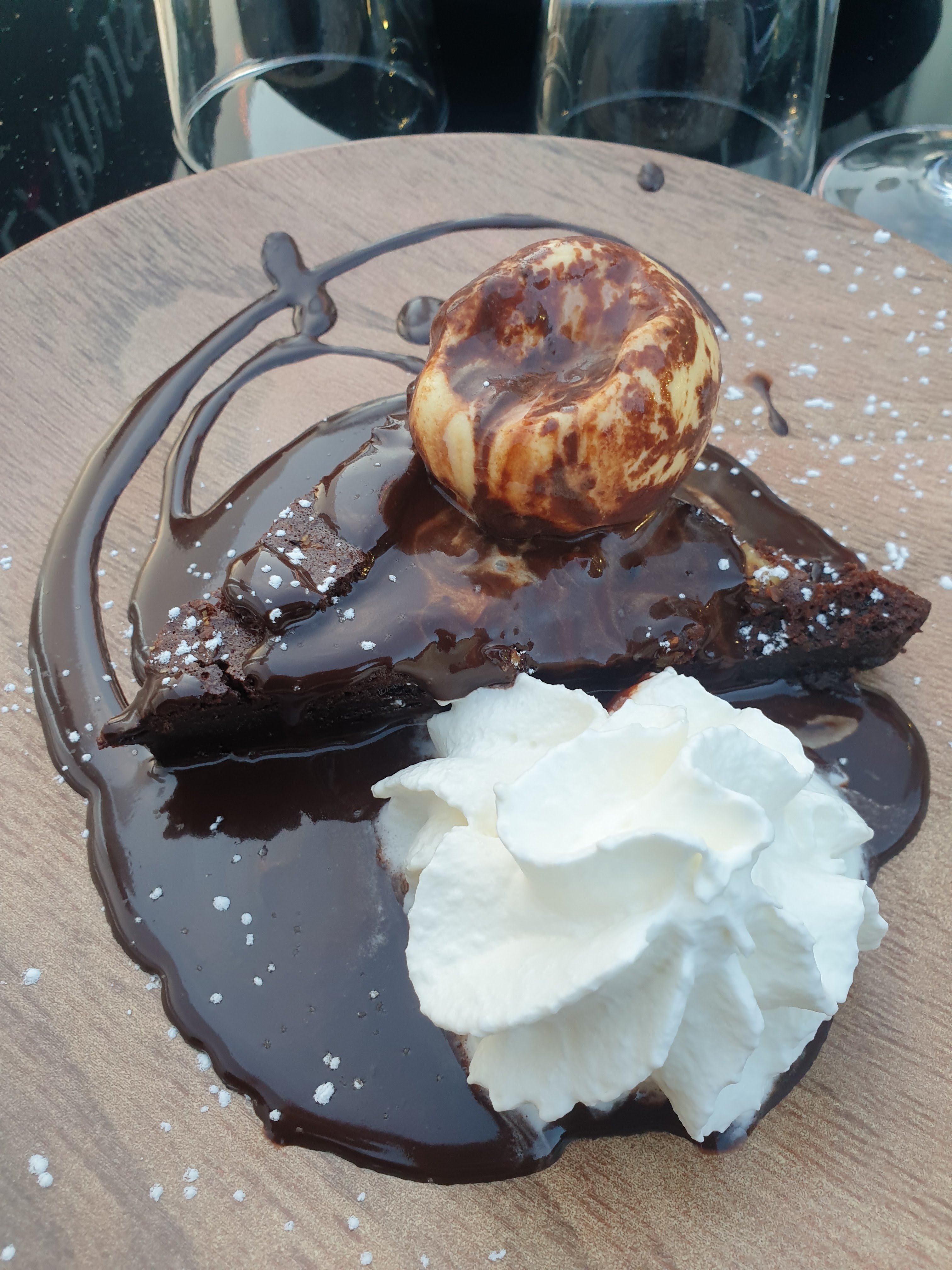 Ambiance sympathique et cadre agréable. C’est après que ça se corse, 20 minutes d’attente pour le plat malgré 5 personnes en salle. Entrée et plat font le travail sans le petit plus... 1h pour entrée+plat tempos pour le dessert