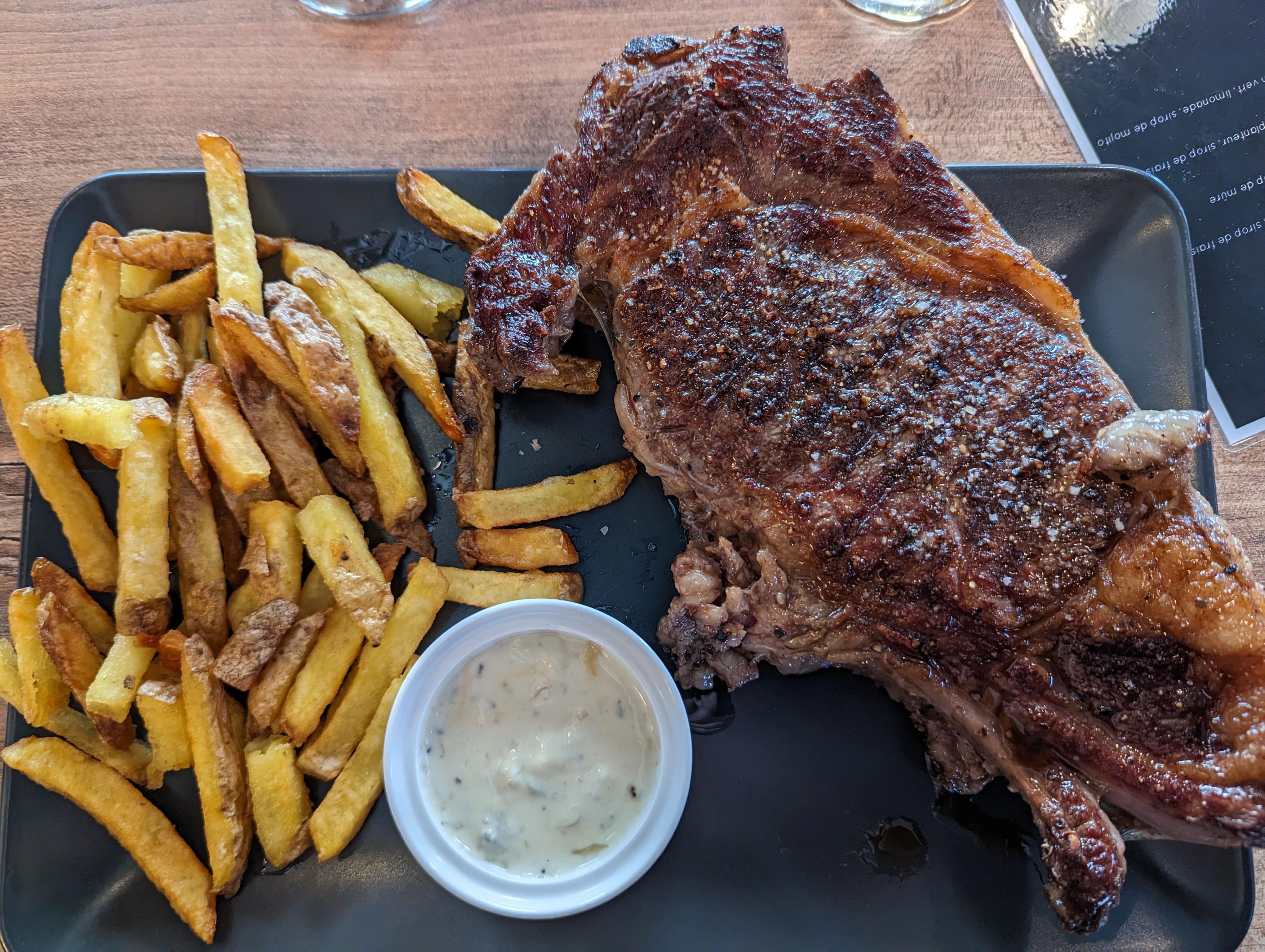 Nous avons commandé une T-Bone très bon et bien préparé. Les propriétaires ont été très sympathique avec nous et notre chienne. A refaire
