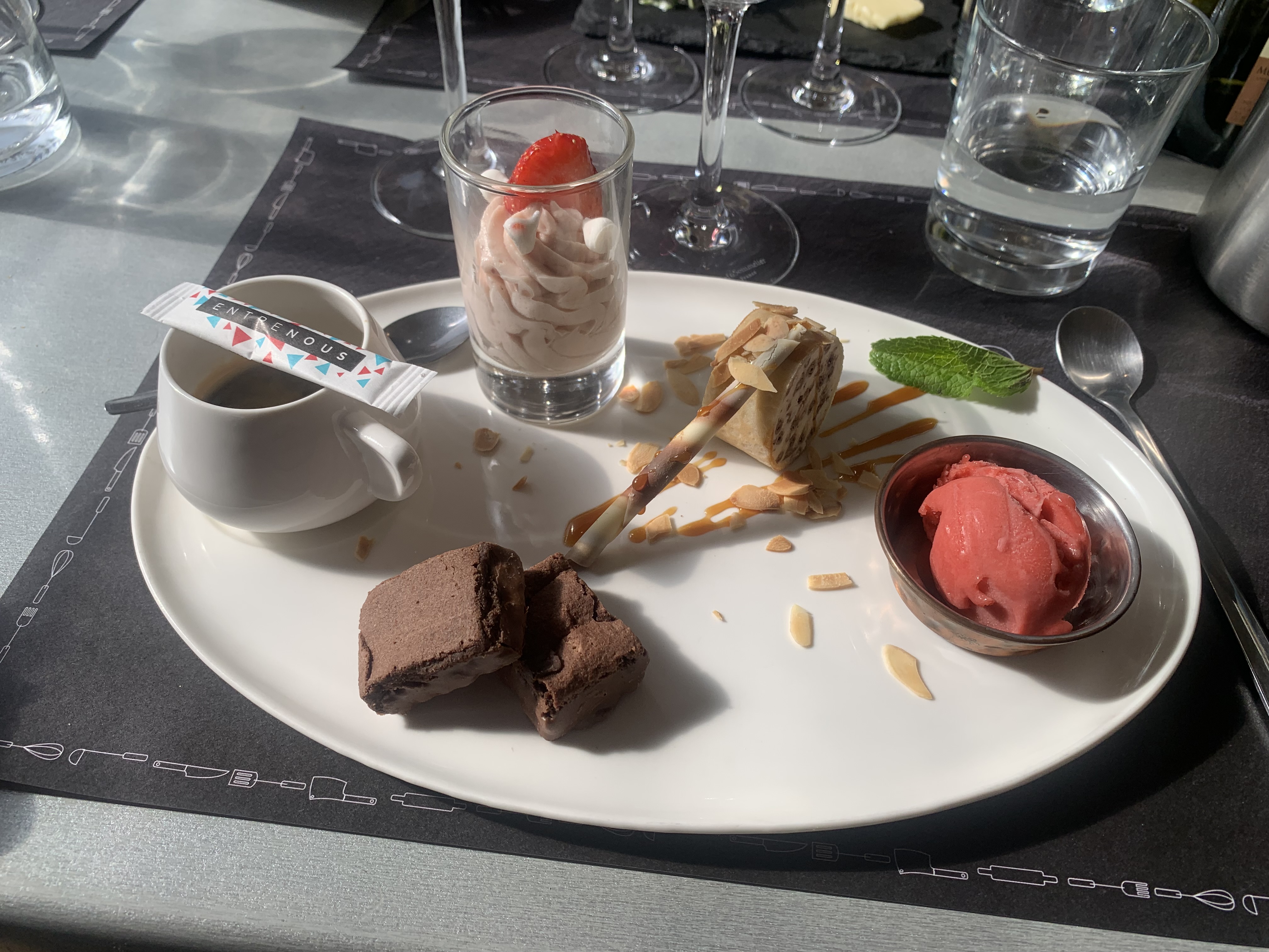 De très belles assiettes d’agneau bien garnies et de délicieuses saveurs. Pour le plat principal 5 étoiles se méritent. Toutefois déception sur les desserts qui étaient loin de la qualité du plat principal, une crème brûlée ratée, une forêt noire revisitée avec beaucoup trop de chantilly. Dommage car le reste était fantastique