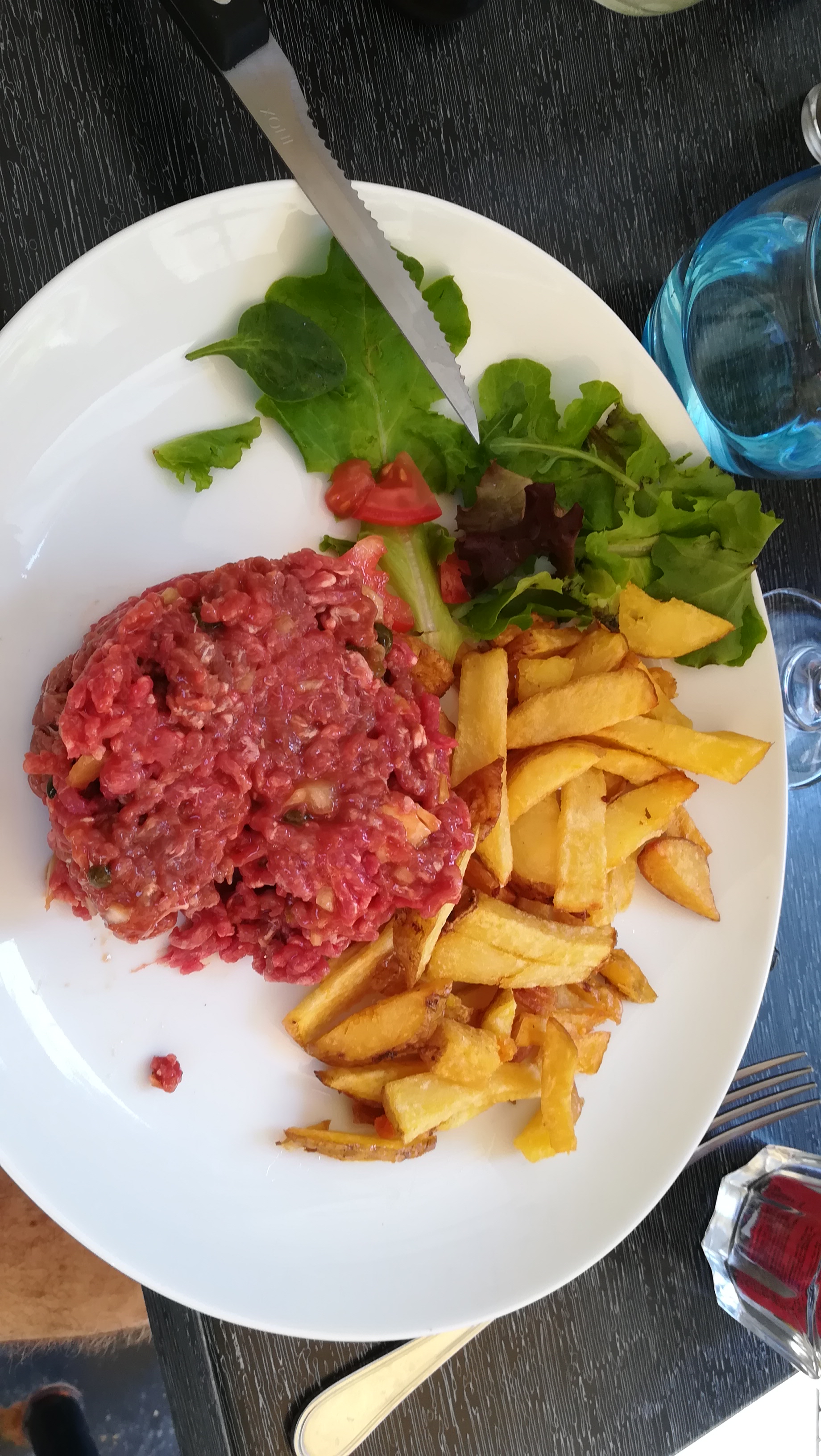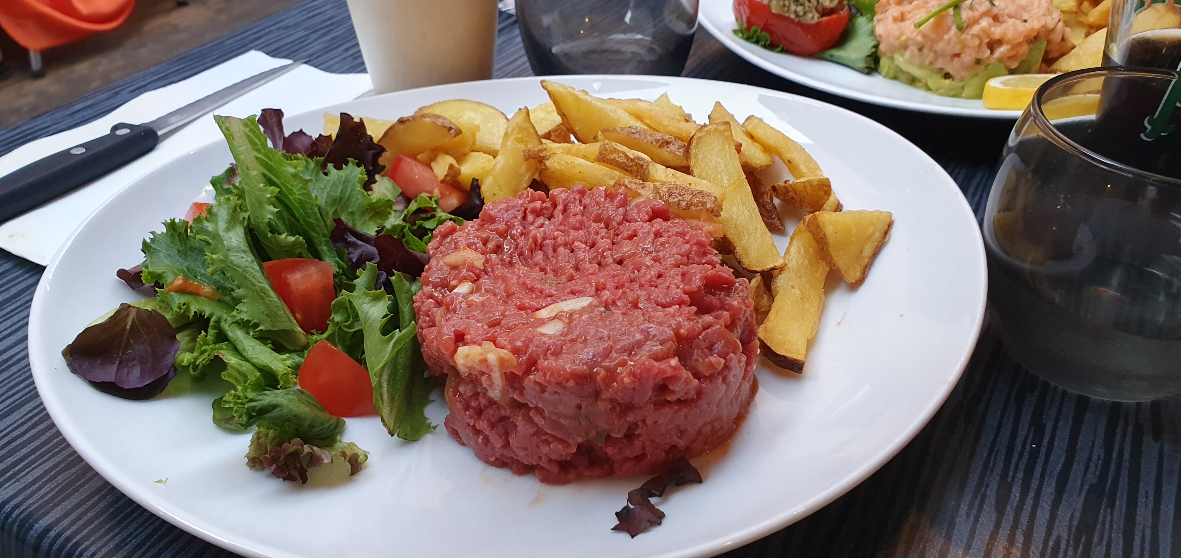 Le cadre est très sympa dans la vieille ville. La serveuse est prevenante et très agréable. Service rapide. Le tartare est énorme !!. Il existe un plat du jour à 12.50€. Je recommande à tous ceux qui aime manger de bon produit à petit prix.