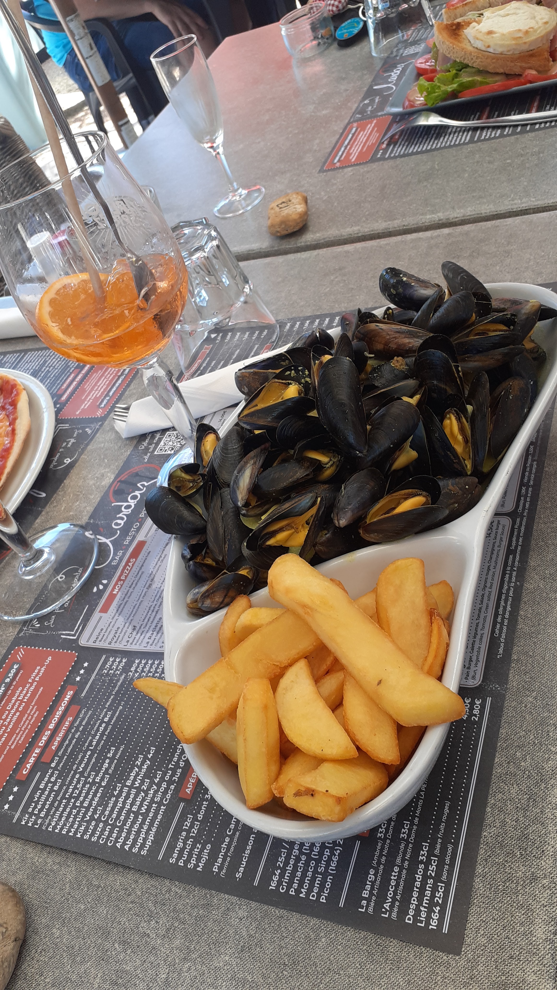Endroits extrêmement sympa pour juste boire un verre ou pour manger. 1er fois, nous avons bu un verre pendant que les enfants était aux parc de jeux qui est juste à côté donc toujours à notre vue. 2eme fois, nous avons manger, toujours un excellent accueil très familial avec une équipe souriante et attentive. Côté cuisine un régale, bravo au chef et ça son équipe très compétente, pizza pâte fine et très bien garnie viande de grande qualité, beurgeur généreux et délicieux et bien sûr, les moules minute (il faut le précisé) sont au top et bien charnu. En résumé je recommande fortement cette étape si vous êtes dans la région pour prendre une bouffer de bonne humeur et de plaisir gustatif.
