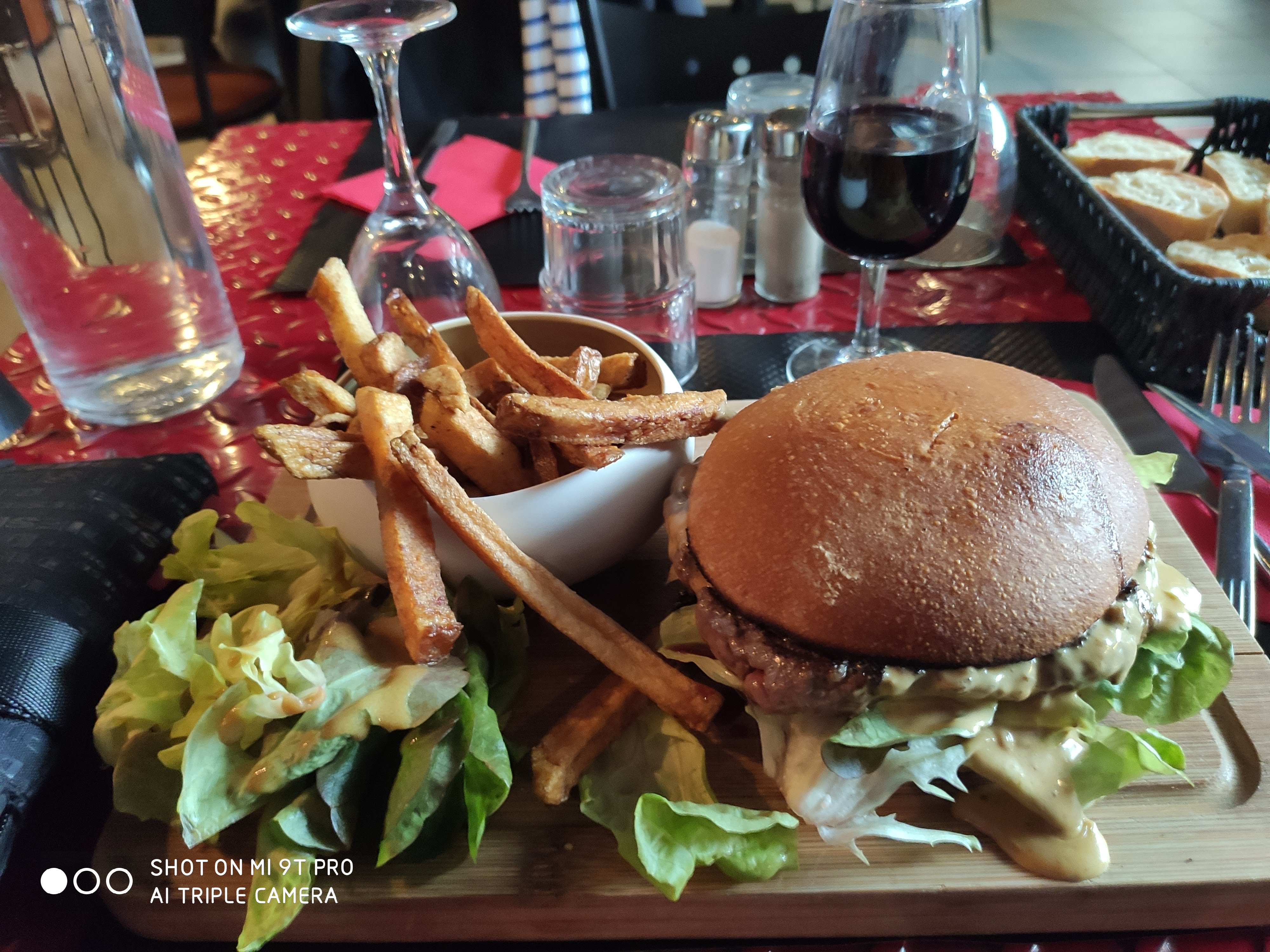 Ambiance pas très agréable Burger bien trop chère (17 € pour juste 1 steak trop cuit, 1 tranche de bacon et du fromage accompagné de trois morceaux de salade et 5 frites ..... peut-être 6...), et on ne vous demande même la cuisson souhaitée de votre viande Tout est trop excessif, des entrées au desserts, au point de finir le repas avec une douceur achetée à la boulangerie d'à côté.....