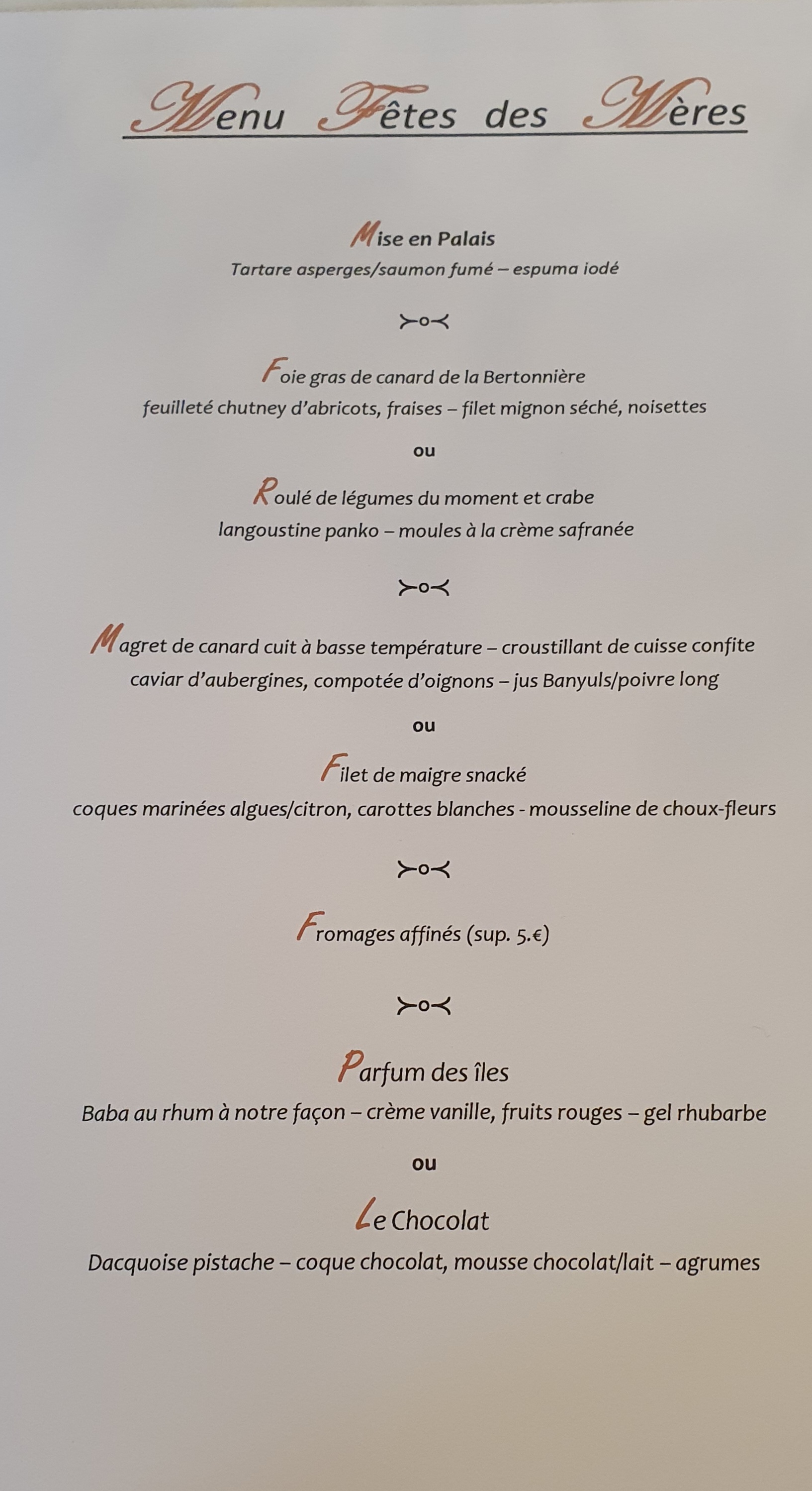 Menu jour de fête (48 ans de mariage)extra je recommande équipe au top nous sommes très bien reçu quand au menu un vrai régal merci au chef