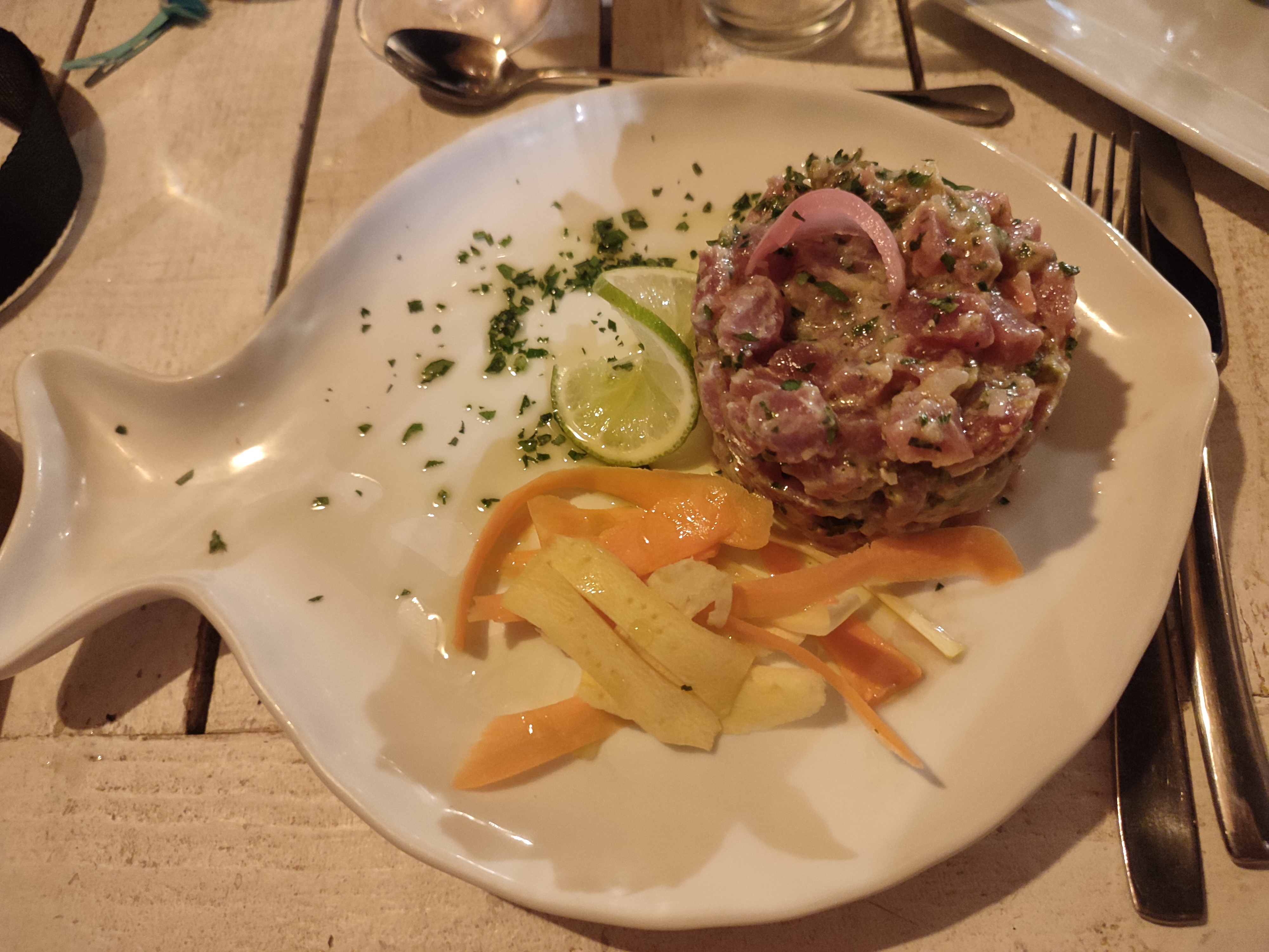 Le cadre est magnifique, les plats sont très bons (surtout les tapas du beach bar), le personnel est sympa et souriant. Je recommande.