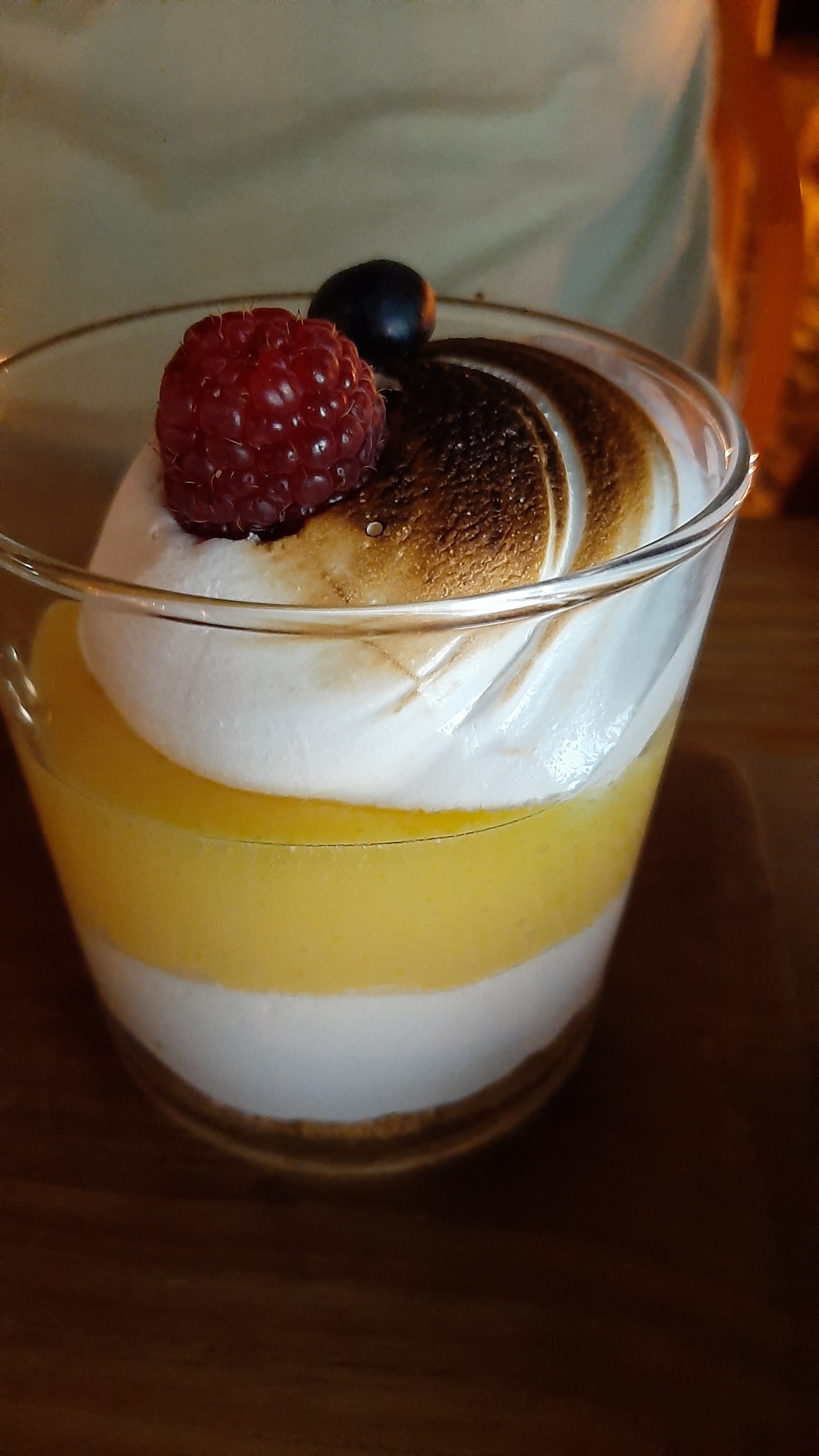 Parfait! Nous avons pris le mi-cuit de thon qui etait plus-que-parfait et un dessert du jour avec une ile flottante retravaillée, exceptionnelle! Service ultra gentil, patron genereux, vue imprenable, p.a.r.f.a.i.t !