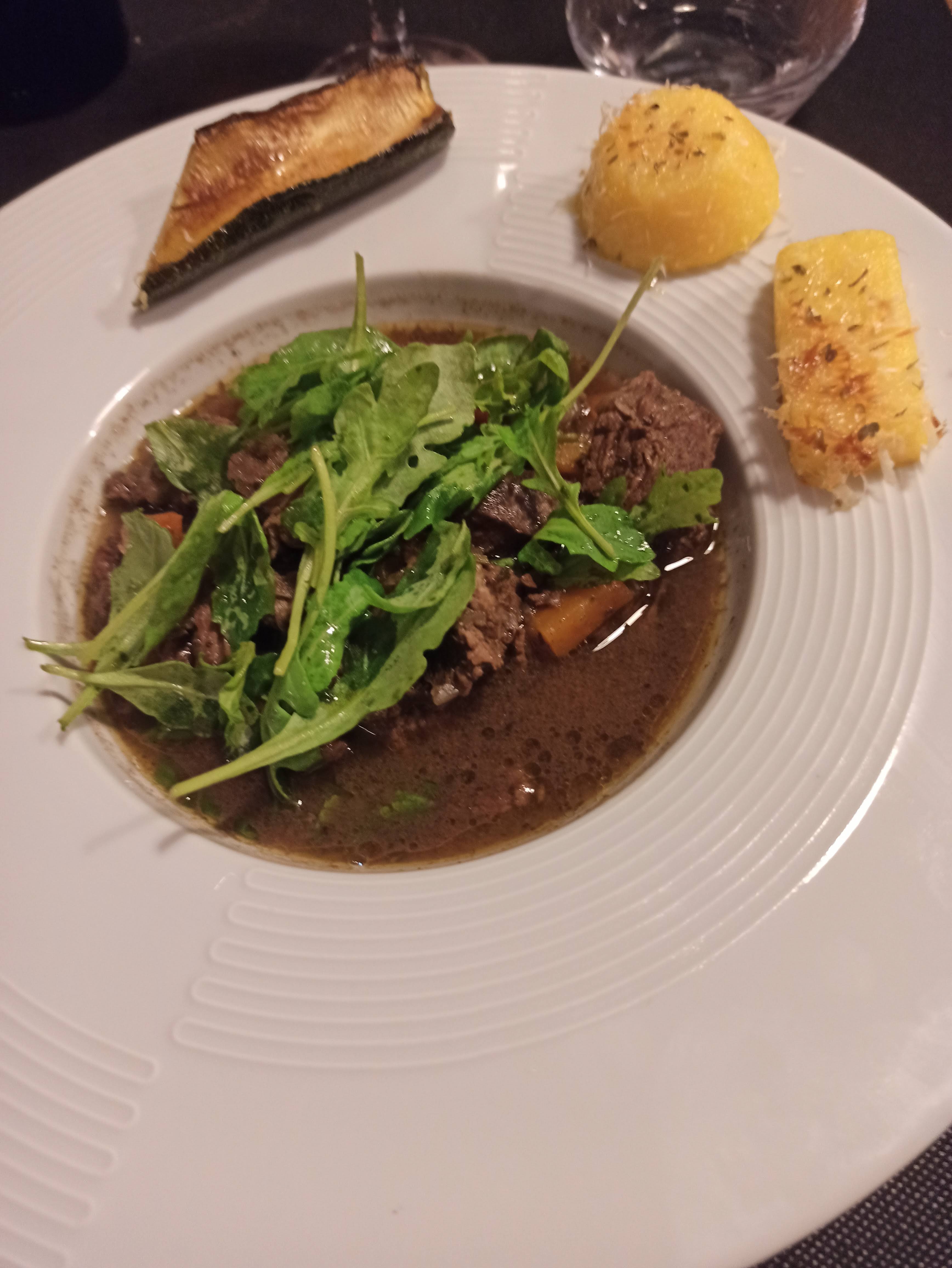 Si vous souhaitez faire une petite pause dans la délicieuse cuisine française, c'est le bon endroit pour vous. Cuisine italienne typique autre que la pizza, préparée par le mari du service extrêmement sympathique et ouvert. Des pâtes faites maison, des ragoûts et un excellent tiramisu caractérisent le menu petit mais délicieux. Les prix sont relativement modérés. Une recommandation absolue ! Sur la photo, un délicieux plat de bœuf braisé avec de la polenta et du parmesan et une courgette grillée.
