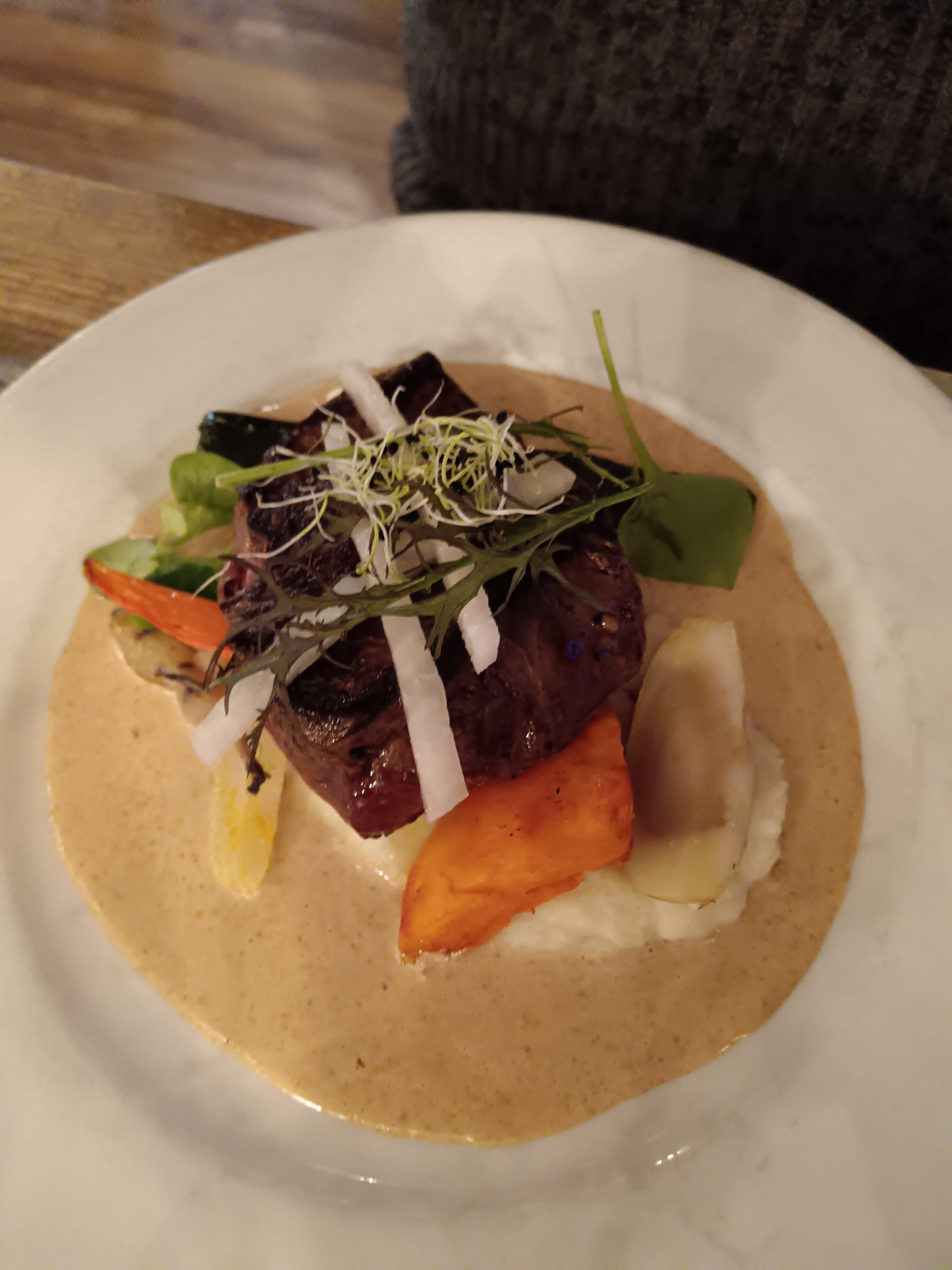 Juste délicieux, du début à la fin. Entrée magnifique et délicieuse, la pièce de bœuf parfaite. Je vous laisse découvrir la mise en bouge.