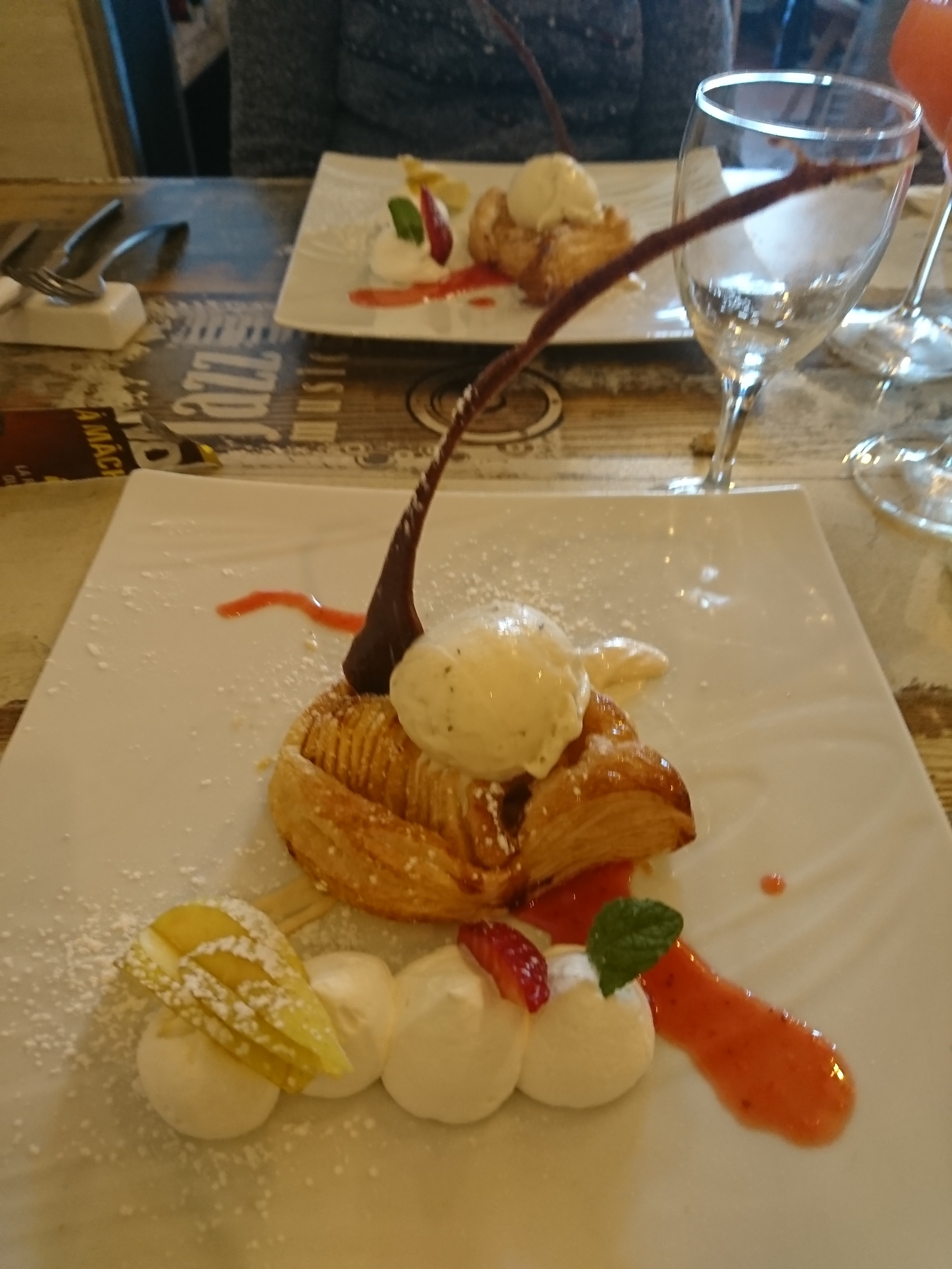 Autant la salle côté cheminée est vraiment très bien au niveau ambiance ,,autant la terrasse couverte n est pas sympa pour moi..... Les plats sont très bien présentés,le plat végétarien était très goûteux. Cette année ce restaurant est au niveau du service très inférieur à l année dernière Dommage la patronne pourrait équilibrer en étant plus présente dans la salle. Bravo au cuisinier en tous les cas.