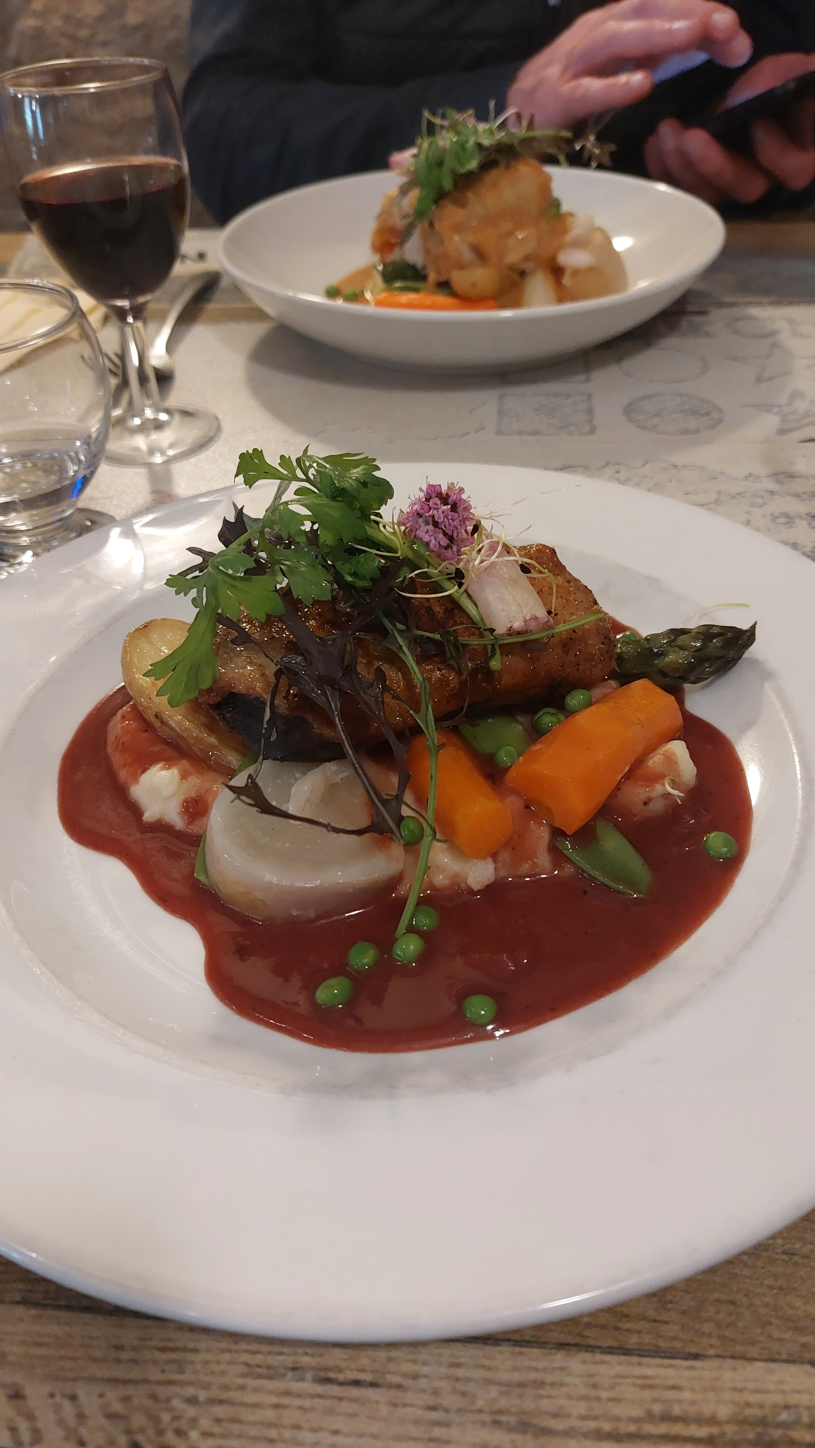 Bon restaurant accueil plutôt agréable plat suffisamment garni et raffiné, gros bémol pour le prix pas suffisamment de choix sur la carte en tous et pour tous seulement 3 entrées et 3 plats au choix pour 35 euros par personne cela reste léger