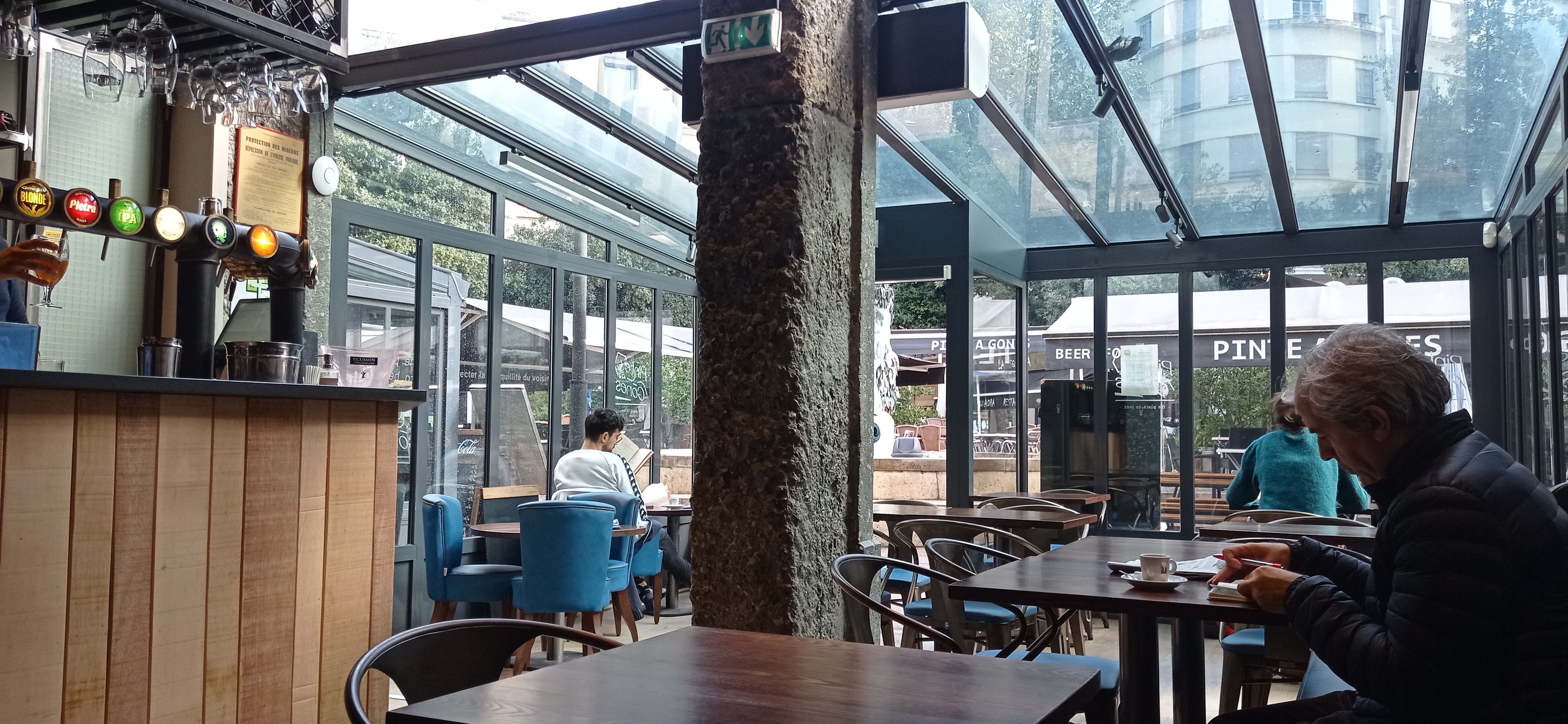 patron super sympa, ambiance chaleureuse. dommage que la région veuille enlever la terrasse que je trouve faisant partie du patrimoine de la place Guichard! ambiance très cosmopolite, décontractée. J y passe toujours de bons moments