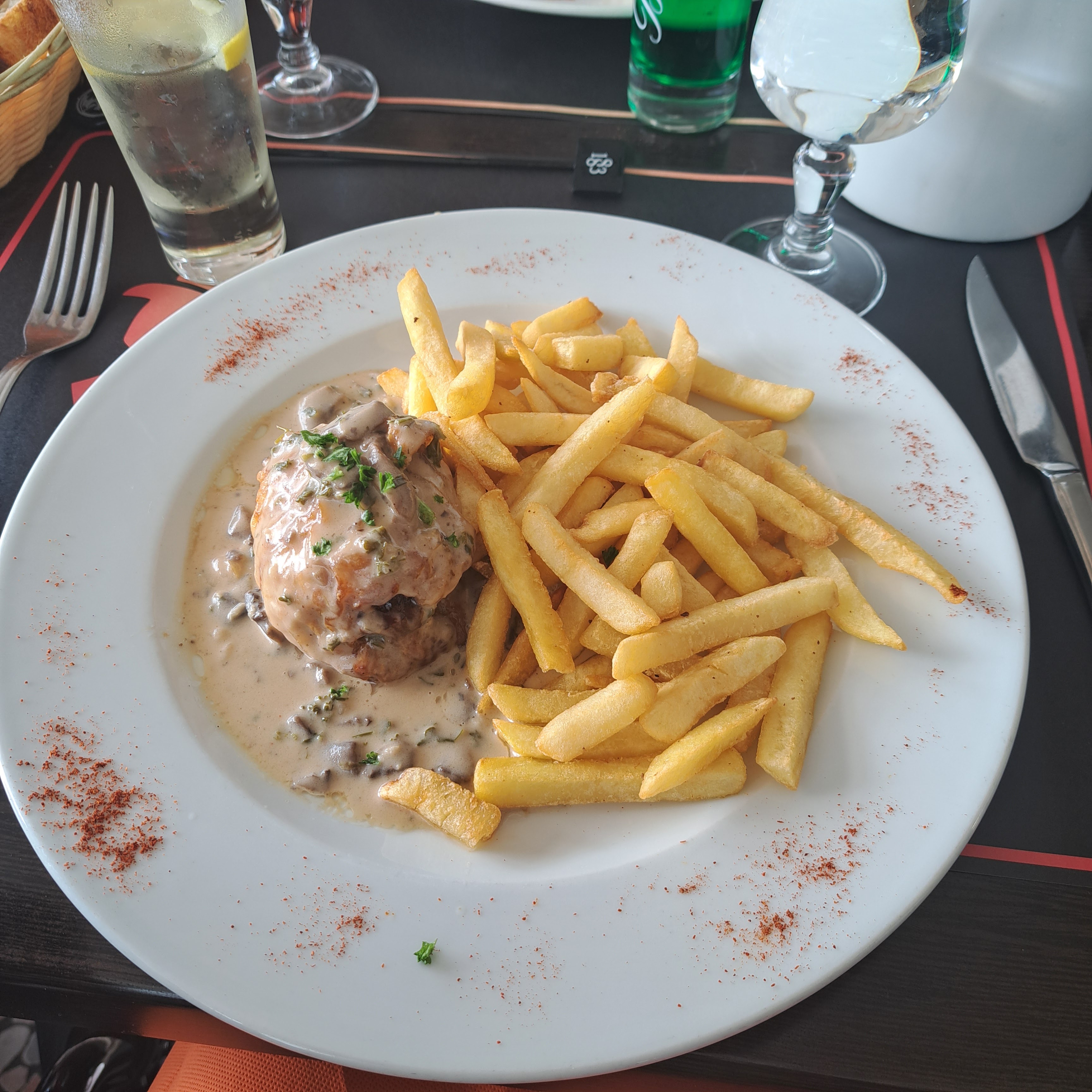 Je corrige mon avis (ci-dessous) j'apprécie que le propriétaire est répondu à mon avis ... En réponse à votre message, on pensait quand avertissant la serveuse, cette dernière nous le proposerai 🥴 mais elle ne l'a pas fait et puis nous, nous n'avons pas osé 😏 Dommage, nous y sommes allés au moins 4 fois et puis la 5eme était de trop malheureusement, déçu cette fois-ci. Ils acceptent de nous servir à 13h30 mais ne nous ont pas averti qu'il ne restait rien. C'est à dire plus beaucoup de frite, plus de plat de jour et plus de dessert. Donc, on nous propose l'entrecôte à la carte. Moi, j'ai eu de la chance mais mon mari a sérieusement mangé que les 1/3 de l'entrecote, le reste était du gras. On le dit à la serveuse qui nous dit que ils achètent en gros et qu'ils ne voient pas forcément ce qu'ils achètent. Bref, elle nous demande quand même si il en veut une autre ....mais bon à 19 euros l'entrecôte ...non merci. Et puis la fin, c'est proposition café ou cafe. Voilà un apero, un plat au gras, un café et pas de dessert ....=66 euros . Dommage, serveuses très agréable, le cadre est pas mal aussi. Nous nous habitons à cote, c'était agréable de venir.