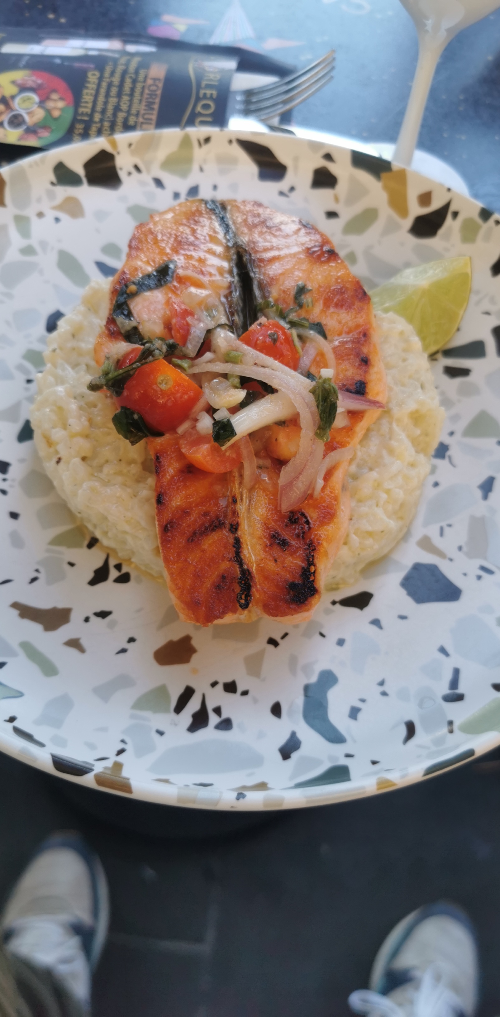 Ont va pas ce mentir, on y est allé avec dans l'esprit d'un attrape touriste....ben oui dans le fonctionnement car effectivement du monde...mais c'est le jeu..mais par contre la cuisine au top,les gars vous maîtrisez bien votre sujet chapeau cela faisait longtemps que j'avais pas mangé un risotto aussi bon. Et notre petite serveuse marina qui était un amour. Tout cela arroser d'un rosé du pays 🥰. Ben voilà vous avez gagné....ont reviendra ! Merci 🙏