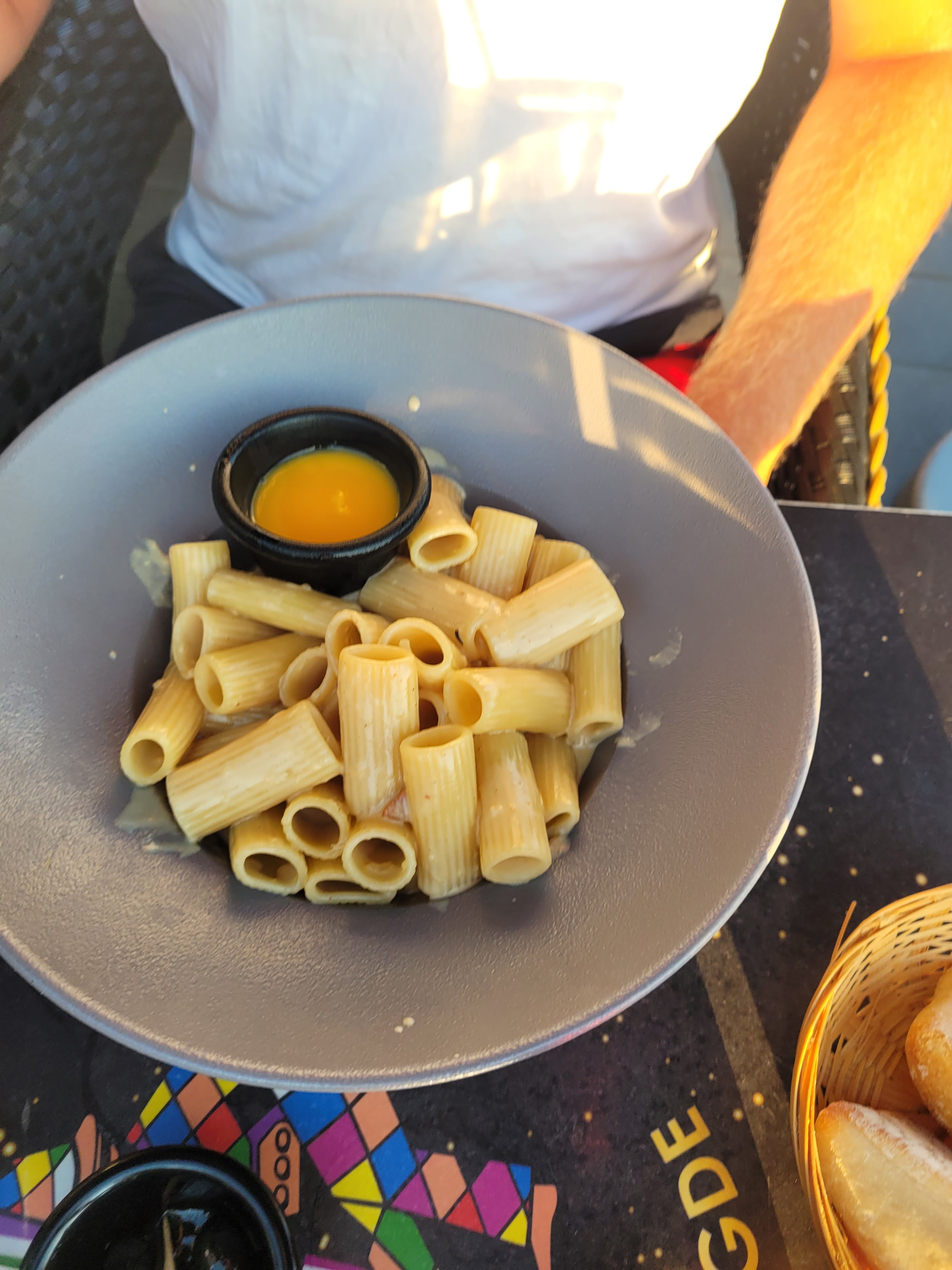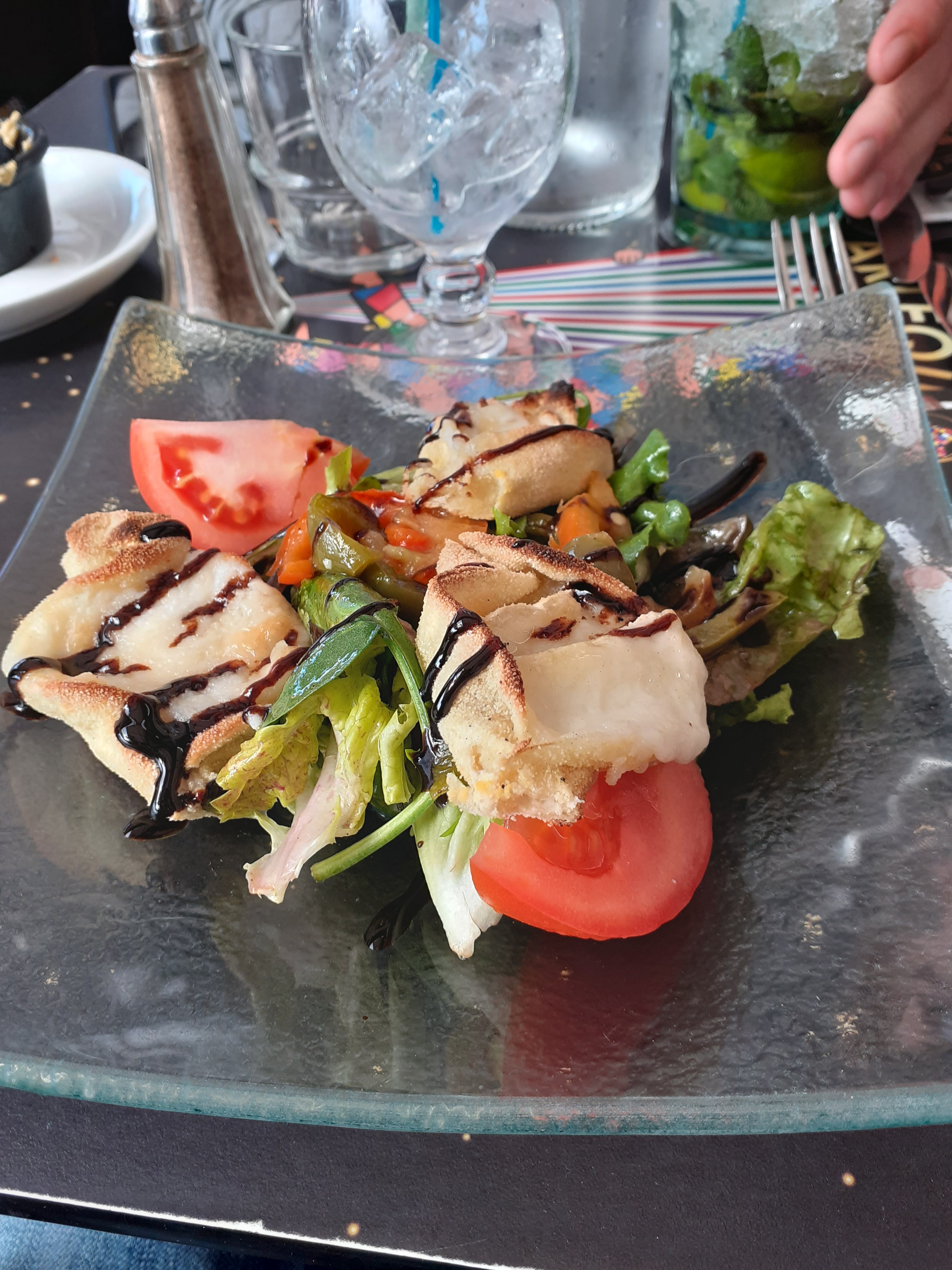 Ce restaurant italien 'était vraiment sympa, il y avait des chanteurs le soir où nous y sommes allées. Personnellement j'ai trouvé qu'il y avait assez peu de choix (de variété de choix plutôt). Je n'ai pas aimé mon cocktail mais ce sont mes goûts personnels, en revanche le petit masque dedans était vraiment beau. J'ai pris une rouille de seiche qui était vraiment excellente (voir photo). La salade est servie dans une espèce pâte frite, donc très gras, vraiment classe au premier abord mais je déconseille, il y en a beaucoup et je l'ai trouvée écœurante. Gros bémol, j'étais partie aux toilettes et quand je suis revenue je n'avais plus mon assiette, très dommage car je n'avais pas fini et j'ai gaspillé contre mon gré... J'ai fini sur ce sentiment négatif mais le plat était vraiment délicieux !