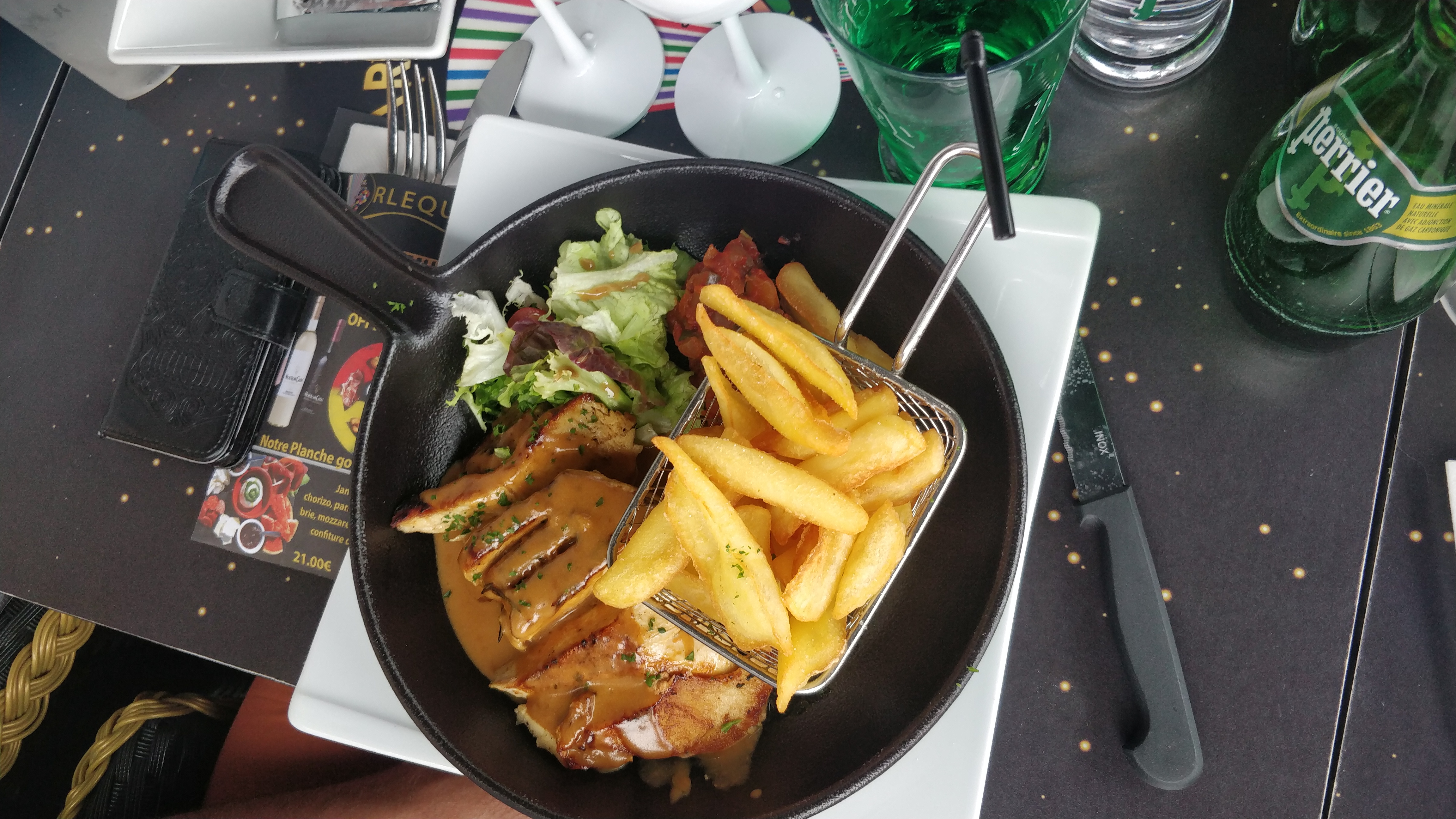 Intoxication alimentaire, en plus une attente de 50 min car la cuisine c'était trompé de table. Commande de frite moule , moule arrivée dans une cassolette mal laver avec du fond de riz. Seul point positif la serveuse qui fait bien son travail. Bref à fuir....