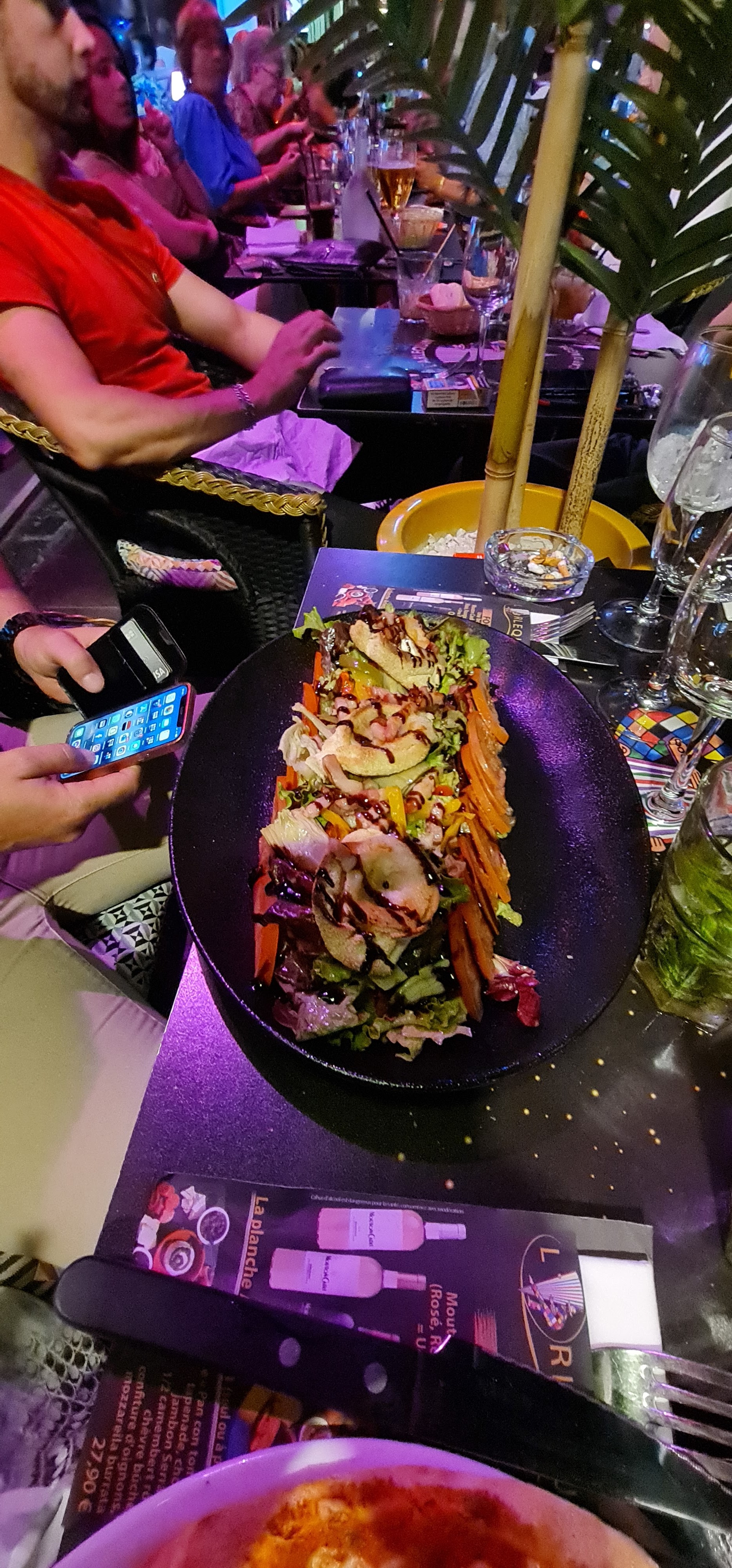 Excellente soirée ! Cadre au top, au pied de la grande roue et en terrasse sur le port.Personnel agréable, dynamique, souriant. Un groupe était présent ce soir là et a mis le feu, les gens se levaient et dansaient. Niveau restauration rien de bien exceptionnel mais cela reste bon. De beaux et bons cocktails, des desserts sympathiques. Seul petit bémol, des tarifs un peu élevés pour ce type de restauration.